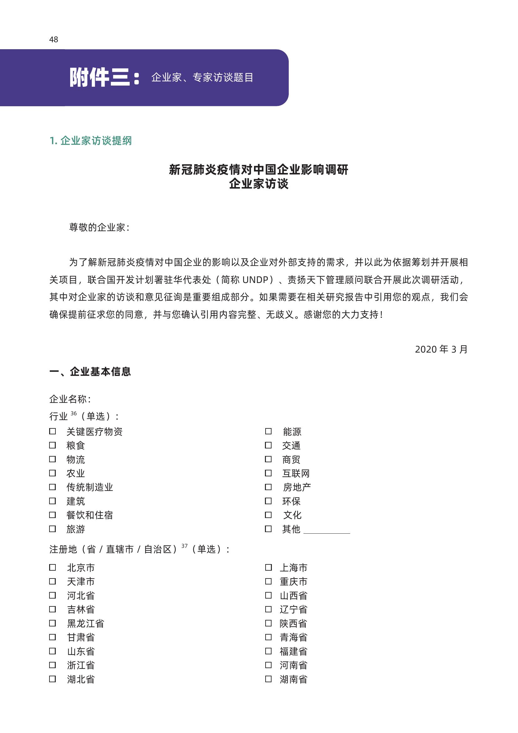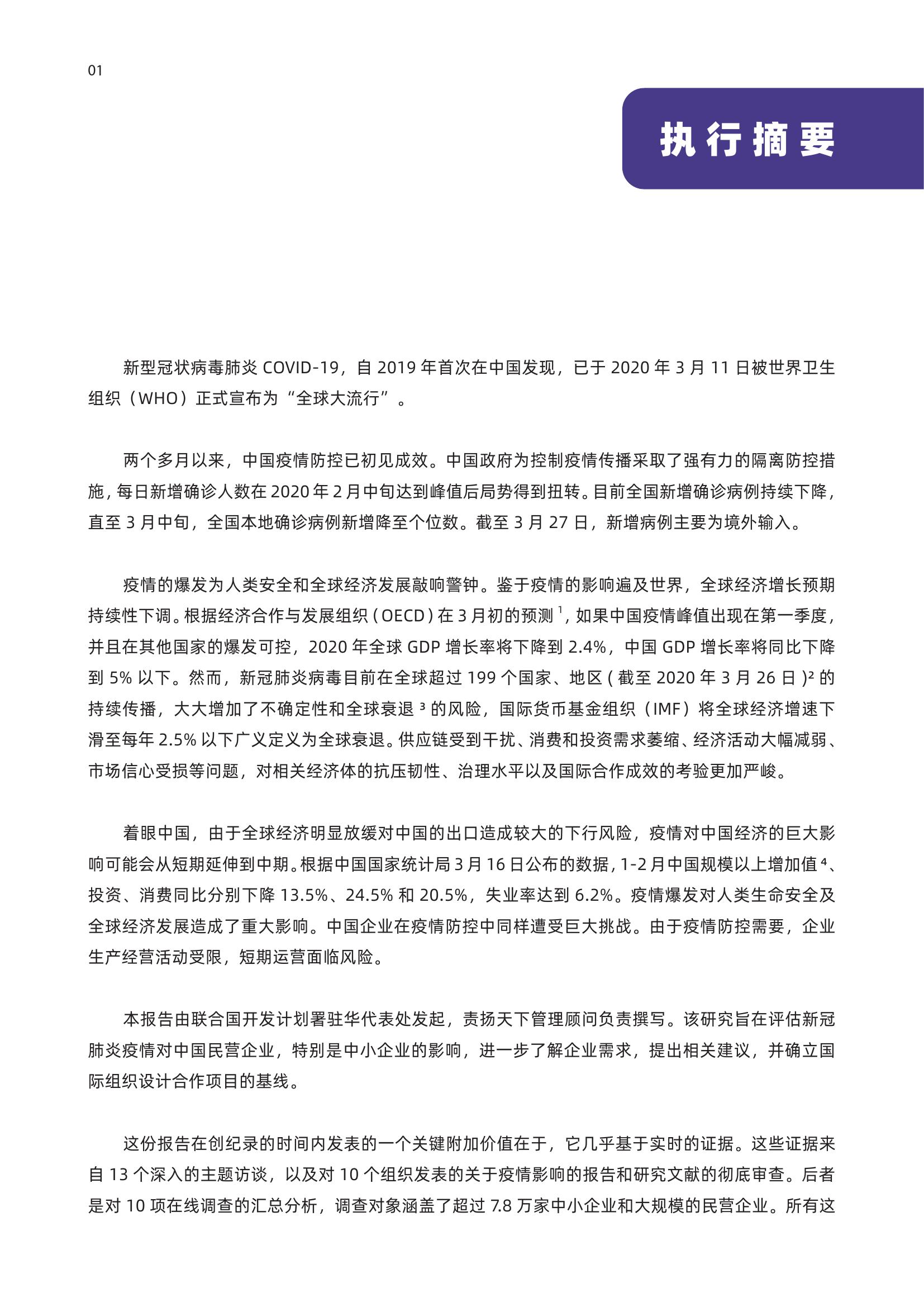 联合国开发计划署发布《新冠肺炎疫情对中国企业影响评估报告》。该研究评估了2019冠状病毒病疫情对中国民营企业,特别是中小企业的影响,进一步了解企业需求,提出相关建议,并确立国际组织设计合作项目的基线。