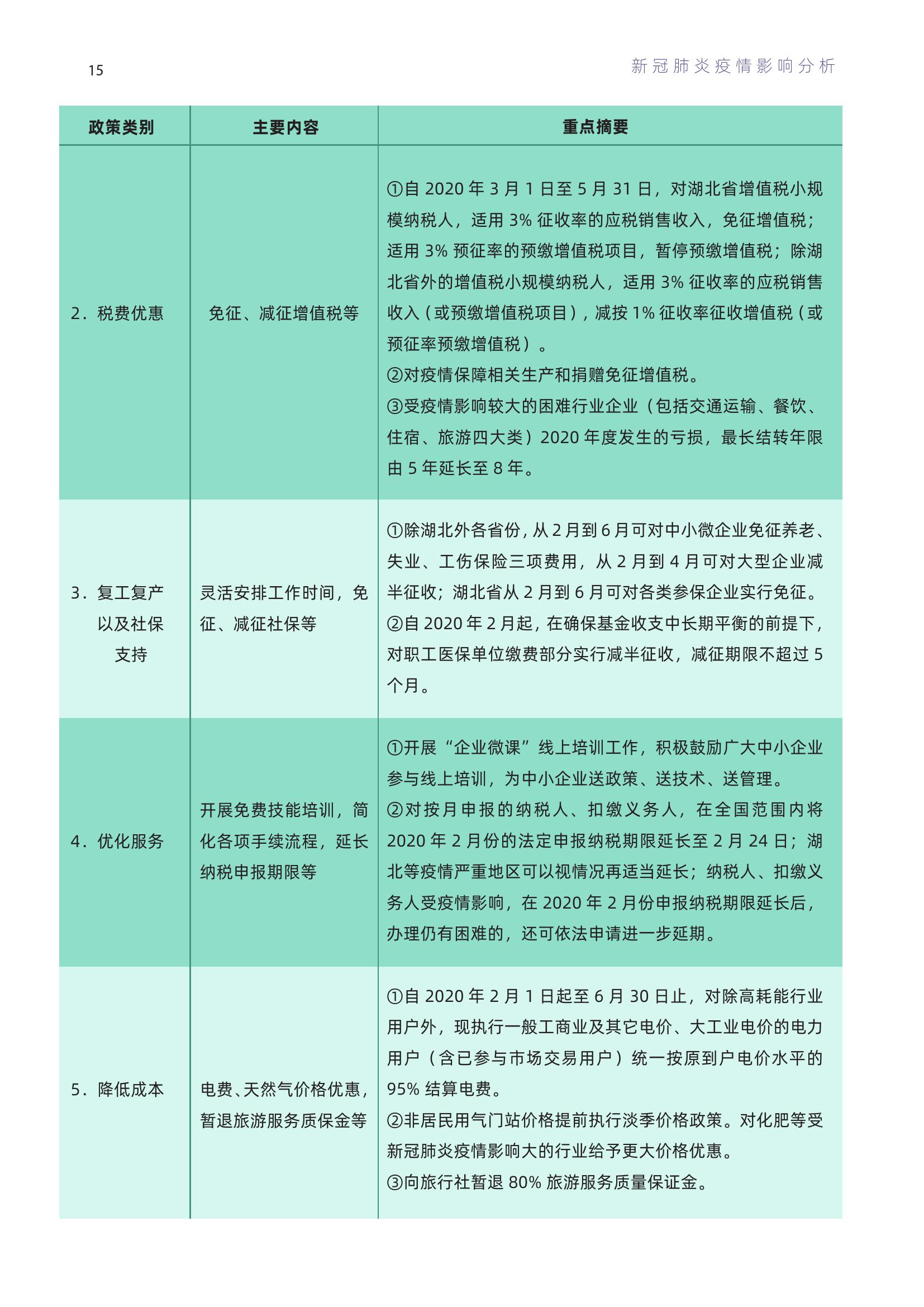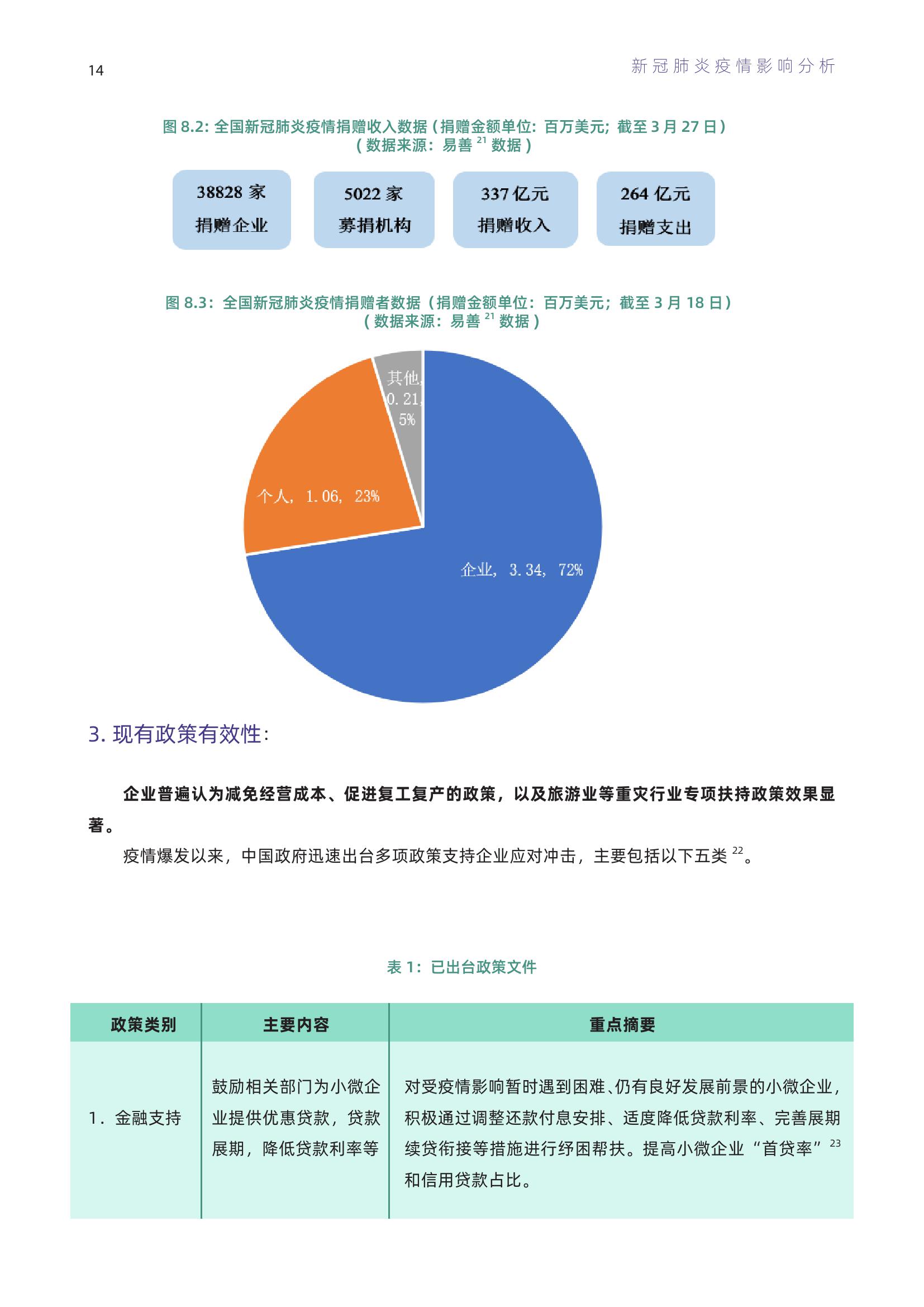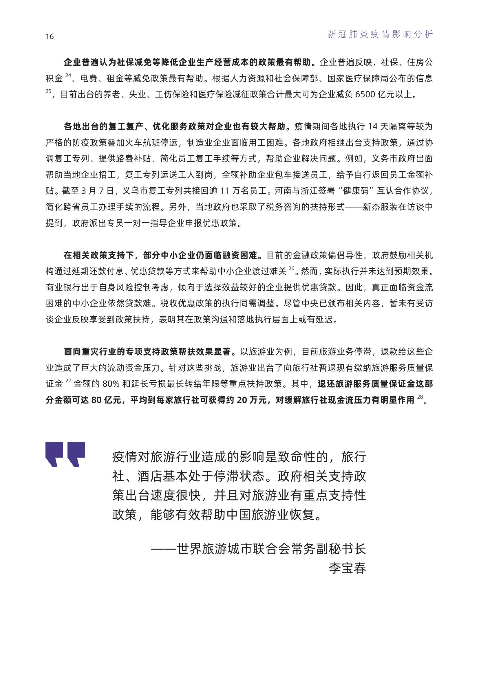 - 企业普遍认为减免经营成本、促进复工复产的政策,以及旅游业等重灾行业专项扶持政策效果显著。