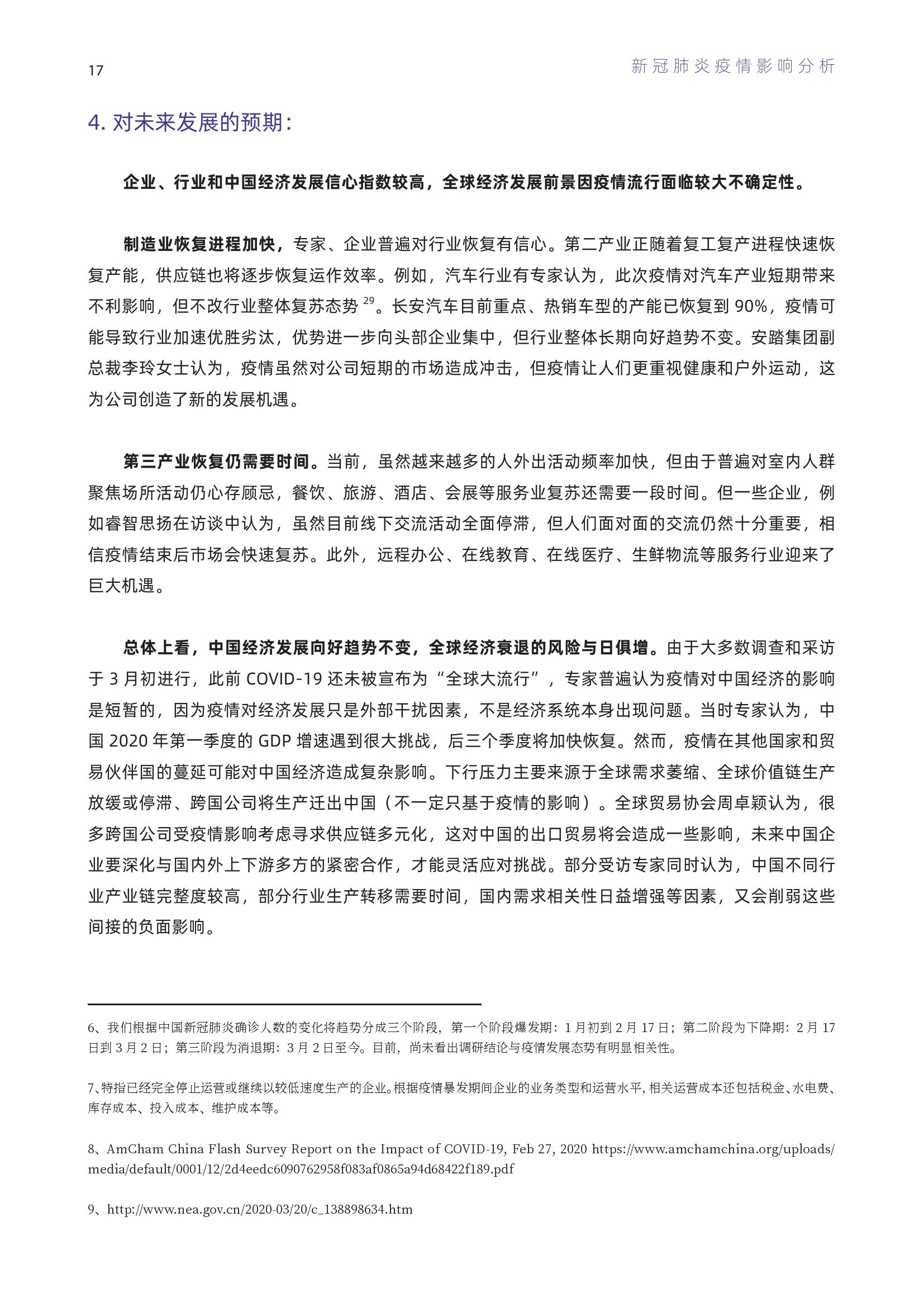 - 中国企业对行业和整体经济恢复及长期发展充满信心,但全球经济发展前景因疫情流行面临较大不确定性。