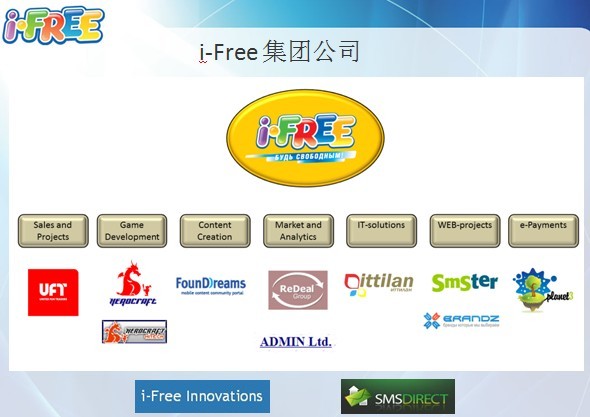 i-Free也是一个跨国公司,总部在圣彼得堡,莫斯科设有办事处、印度、巴西、中国、乌克兰、哈萨克斯坦都设有分公司。2012年我们全年收入2.2亿美金,全球员工超过700名。i-Free作为集团公司出现,其中有一个比较出名的手游公司,是全公司排名前五的手游制作公司,全球排前十,i-Free自己有很多的游戏和内容产生。