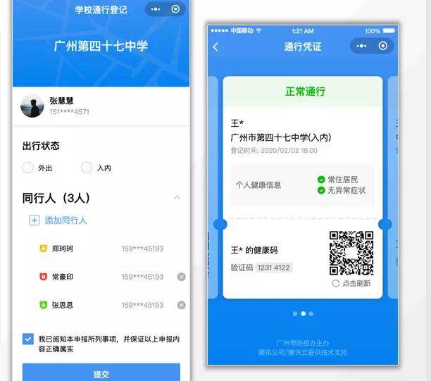 除了核酸检测之外,广深两地借力企业微信“复学码”的能力,开展返校前无接触的健康监测工作,推动师生通过微信小程序填写健康信息表,高效完成对复学师生的健康状况摸排及数据统计工作。