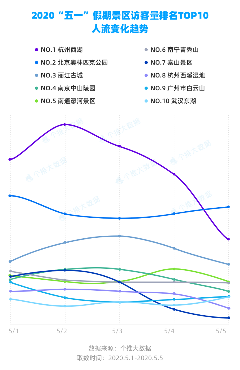 “五一”假期期间,每日互动个推大数据对全国5A景区的到访客流进行了连续观察。