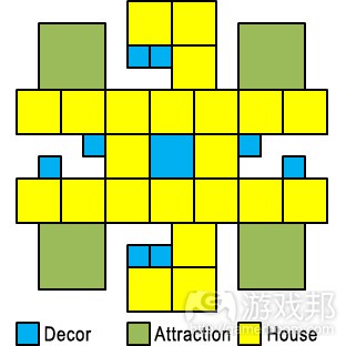《SimCity Social》的城市布局是围绕给予玩家战略选择而设计。这也由此引发了许多论坛针对城市布局策略的讨论,例如下图这种布局建议: