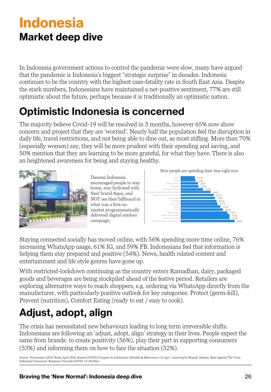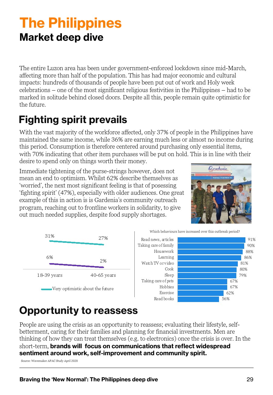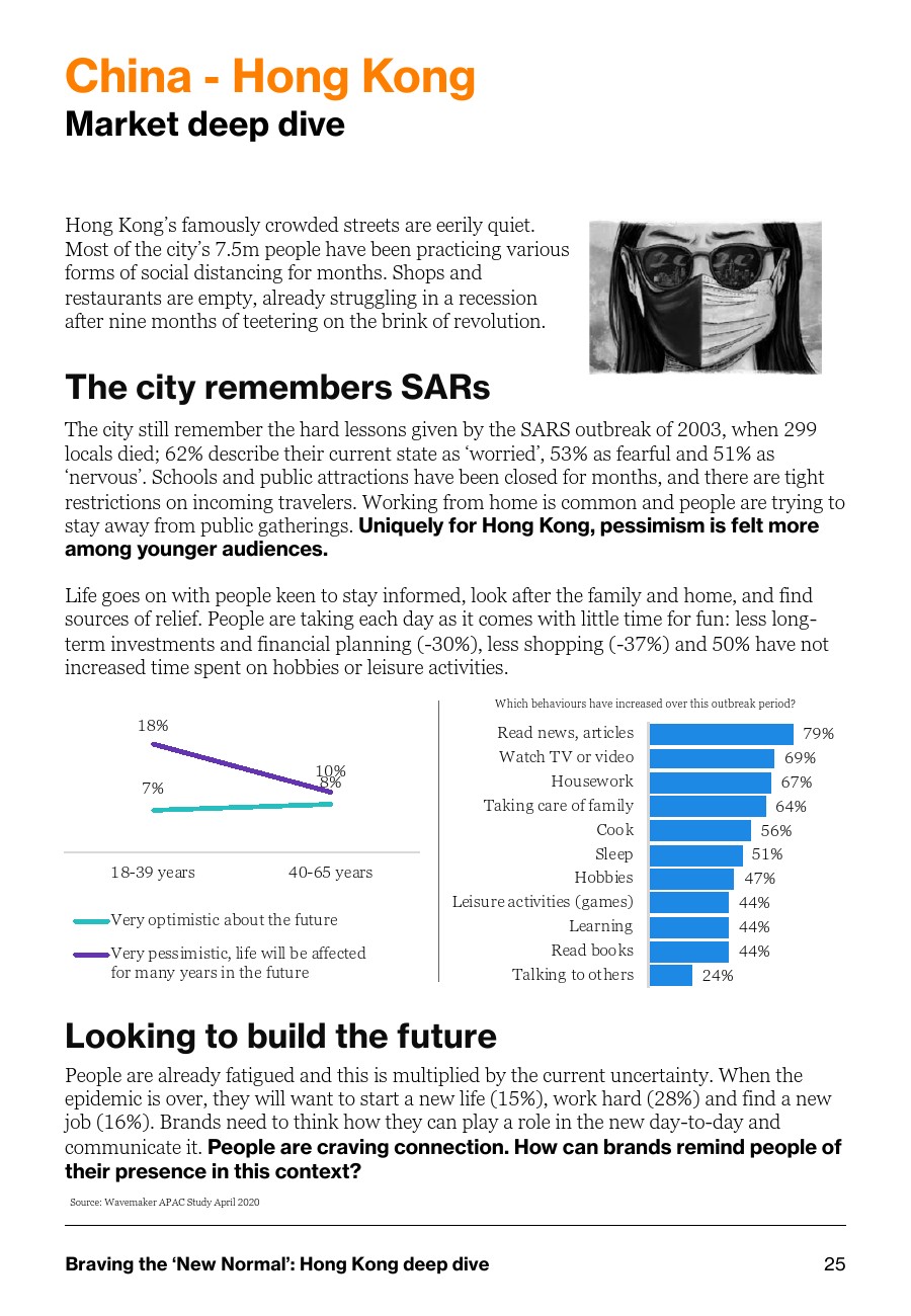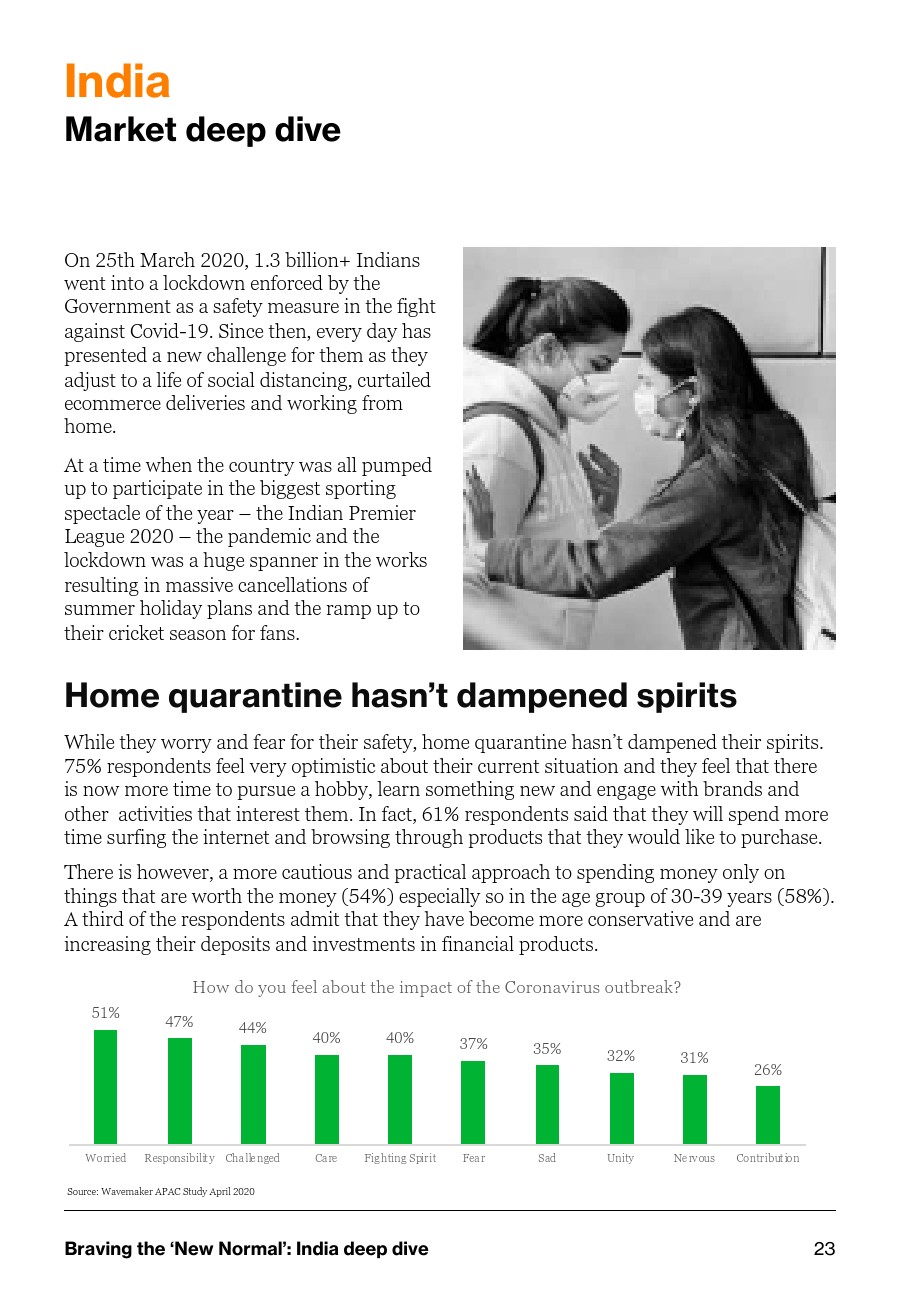 Wavemaker发布了一份新报告”勇敢地接受‘新常态’”。研究人员发现,在COVID-19疫情危机期间,人们普遍保持着乐观情绪。78%的中国受访者和63%的武汉受访者表示,即使在2月份疫情最严重的时候,他们也很乐观。在高峰期过去六周后,该地区(不包括中国)57%的消费者对未来仍持积极或非常积极的态度,这一趋势在18-29岁的年龄段中最为明显。