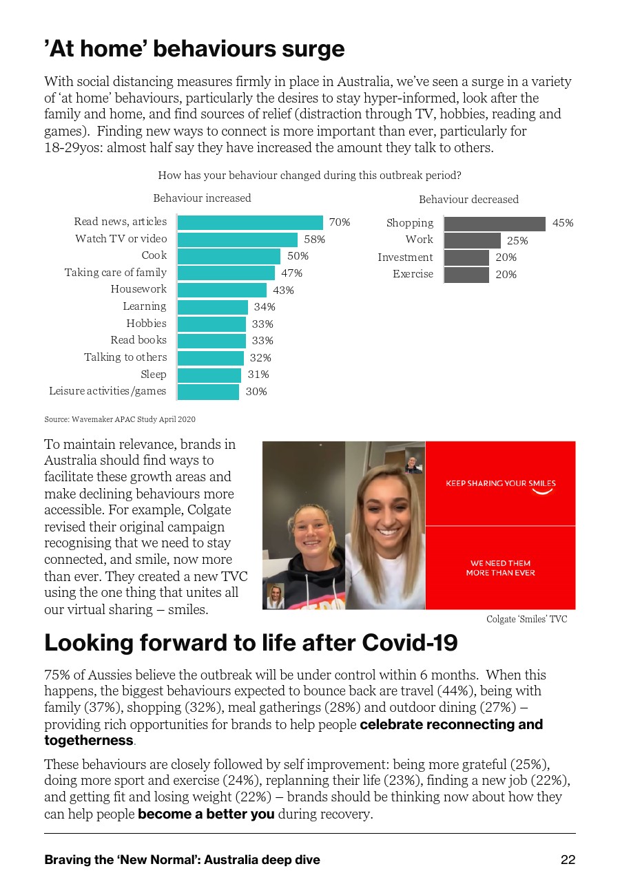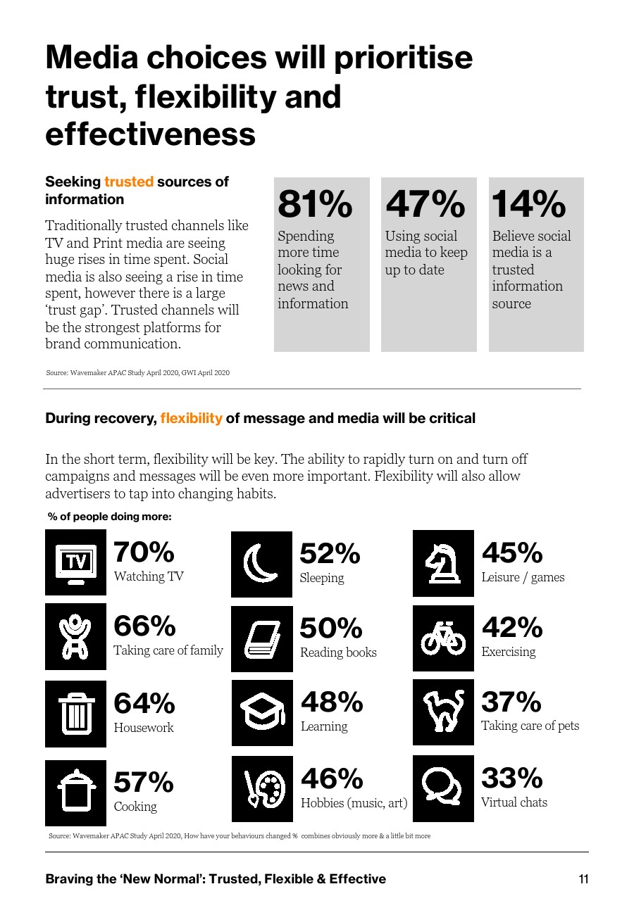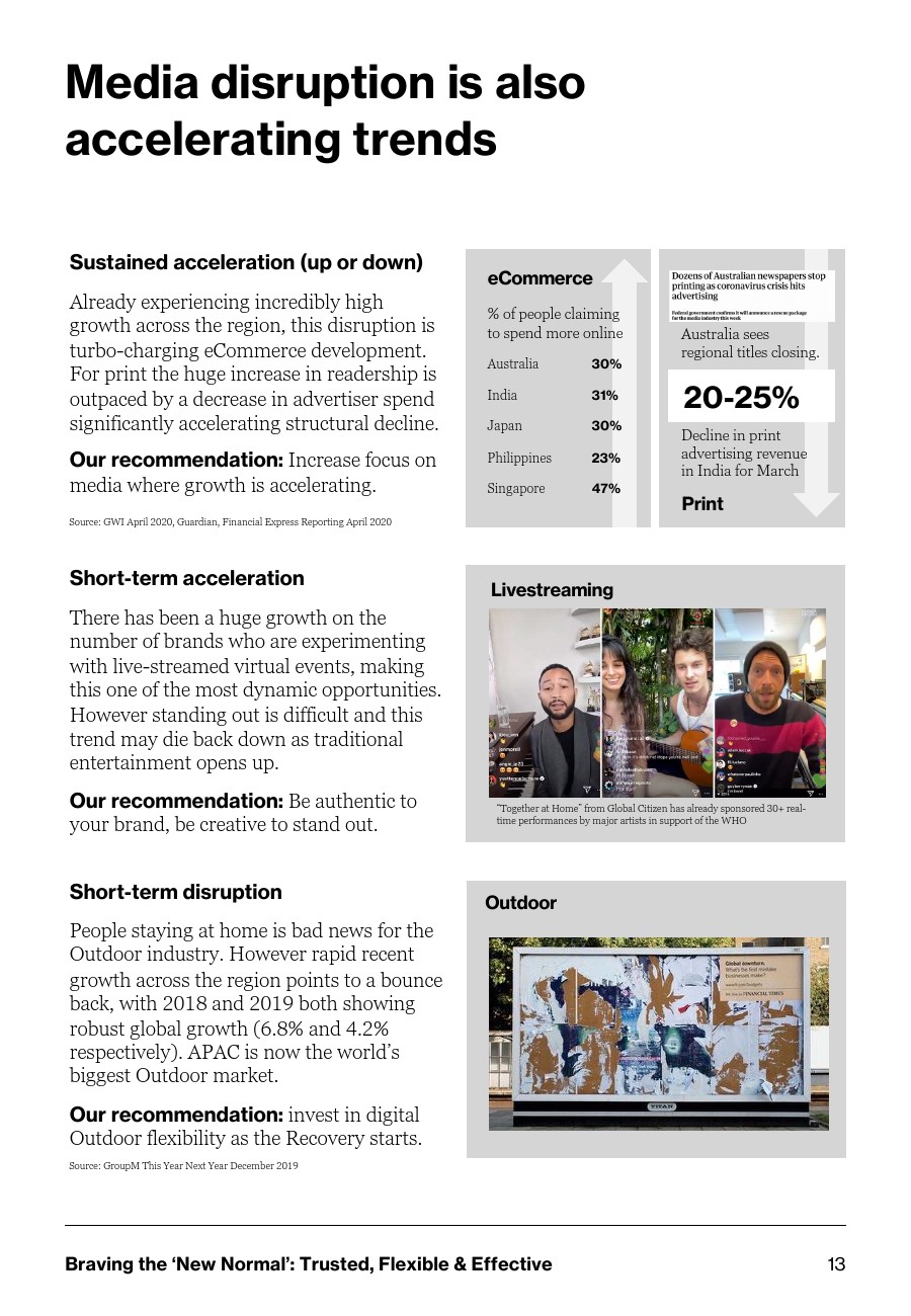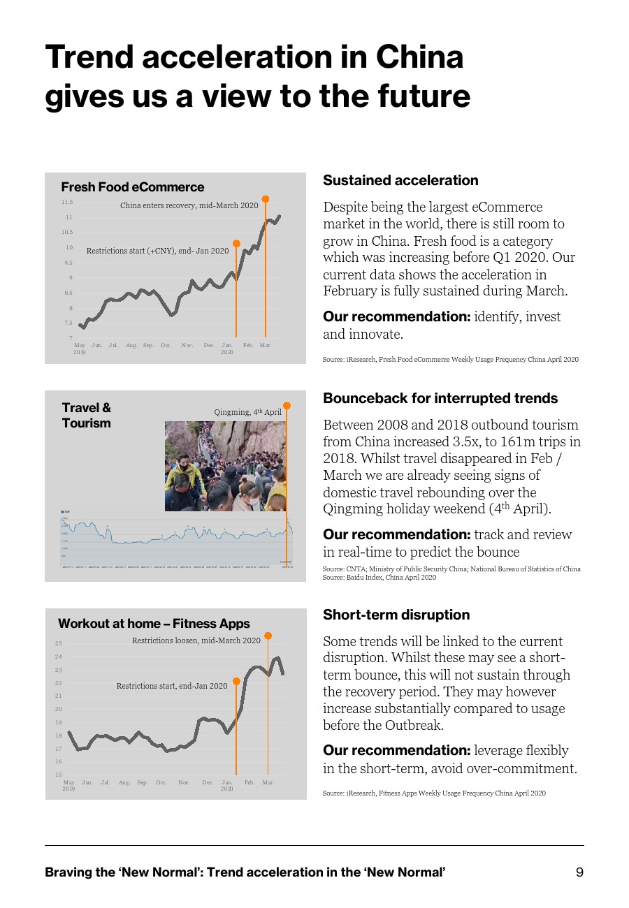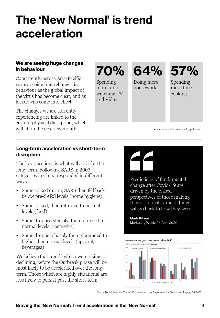 目前我们正处于疫情爆发阶段,但我们很快就会进入复苏阶段(中国现在就是这样)。这很可能是一段漫长的时期,会有一些挫折,但最终我们将进入稳定或冠状病毒在世界各地得到控制的‘新常态’。虽然有些事情会有所不同,但Wavemaker认为这场百年一遇的事件将成为现有趋势的加速器。