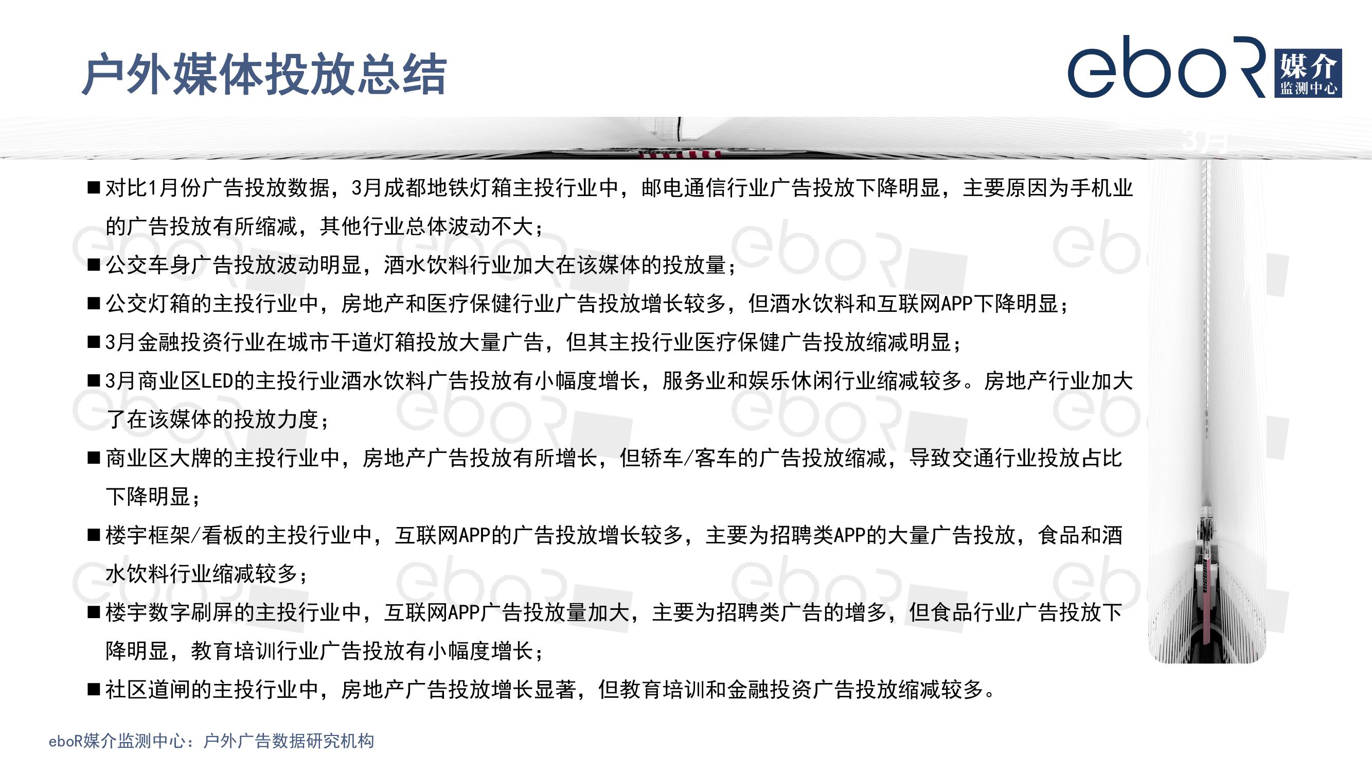 eboR:2020年3月成都户外广告投放分析报告 PDF版本将分享到199IT知识星球,扫描下面二维码即可! 更多阅读:eboR:疫情期间电梯媒体市场研究报告eboR:疫情期间酒水饮料户外广告投放分析eboR:2020年成渝户外广告圈现状与展望的研究报告eboR:2020上半年各户外媒体广告投放分析adSage :2013年教育行业搜索引擎投放分析报告消费者品牌报告:寻找真相Salesforce:2021年联网消费者报告城市新忙族——一二线城市上班族营销洞察微报告热云数据:三国题材游戏广告投放洞察中国人民银行:2019年第一季度城镇储户问卷调查报告CTR:2021年5月电视广告花费同比增长12.5%热云数据:2018年双11电商APP广告投放行为洞察专题报告iPrice:大流行期间浪漫礼物搜索量在东南亚增长57%Brand Finance:2025年印度尼西亚品牌100强Mediaocean:2025下半年汽车营销报告