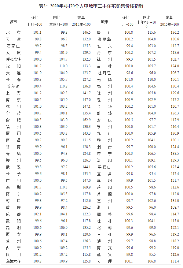 - 国家统计局:2020年10月份70个大中城市商品住宅销售价格变动情况