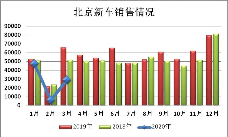 3.3月份北京新车交易28822辆,环比增长59.81%,增幅低于全国301.49个百分点;同比下降56.35%,降幅高于全国13.05个百分点。