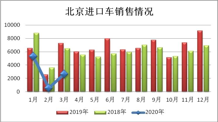 3.3月份北京市进口车交易2649辆,环比增长184.71%,同比下降63.51%,占北京市新车交易总量9.19%。