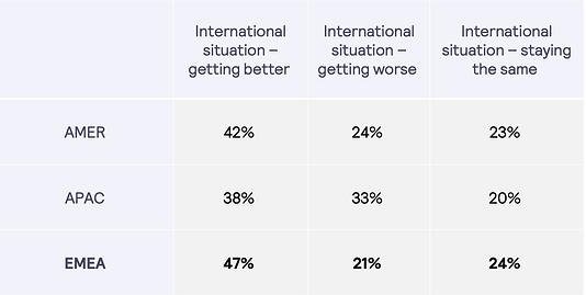 - 25%的受访者认为情况正在恶化,远低于四周前(68%)。23%的受访者认为情况保持不变。