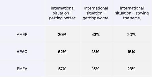 - 43%的受访者认为情况正在改善,比四周前的13%有所上升。