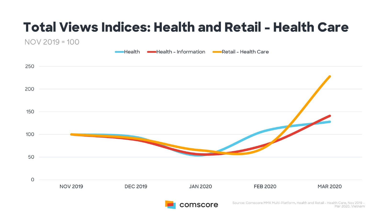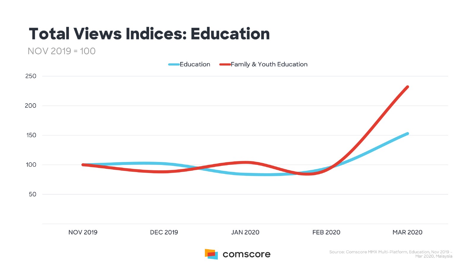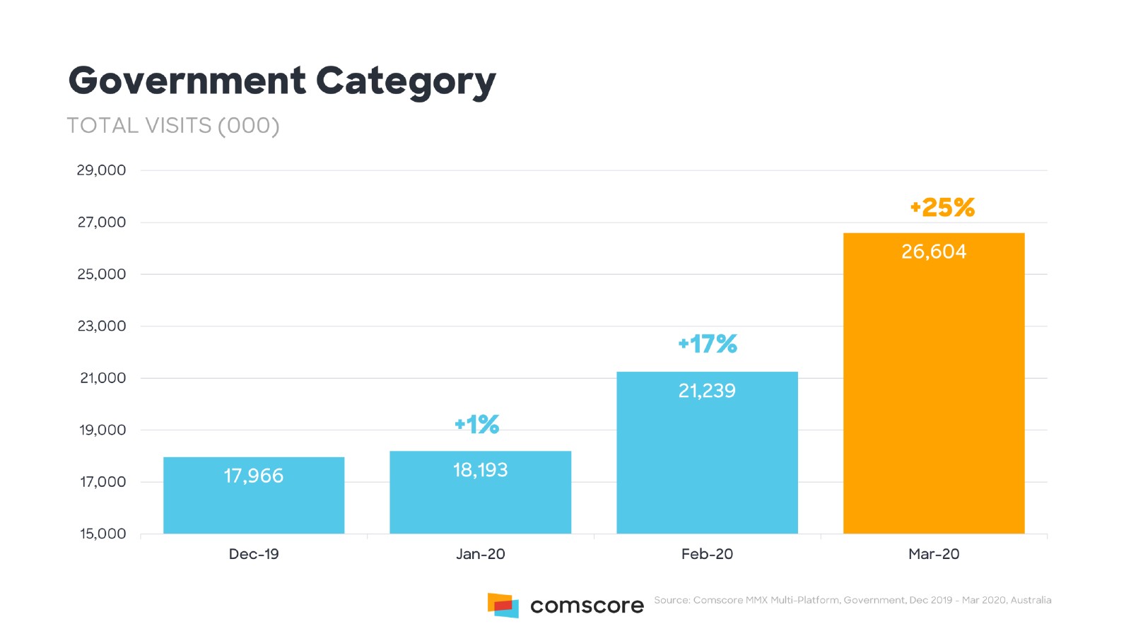 与2019年11月相比,2020年3月新闻网站的总浏览量激增了80%。关于教育的浏览量增长了53%。由于人们越来越关注冠状病毒在全球的传播,消费者访问卫生网站的数量比2月增长了27%。花在金融服务上的时间也呈增长趋势,与2月相比增长了8%。