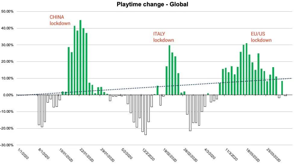 目前,人们很容易用过去几个月的数据作为趋势分析依据。但这段时间中游戏体验时长和支出方面的变化可能只是一次性波动——就像游戏行业每年所经历的季节性波动一样。不过至少在短期内,数百万新增玩家所带来的推动效果不可能完全消失。