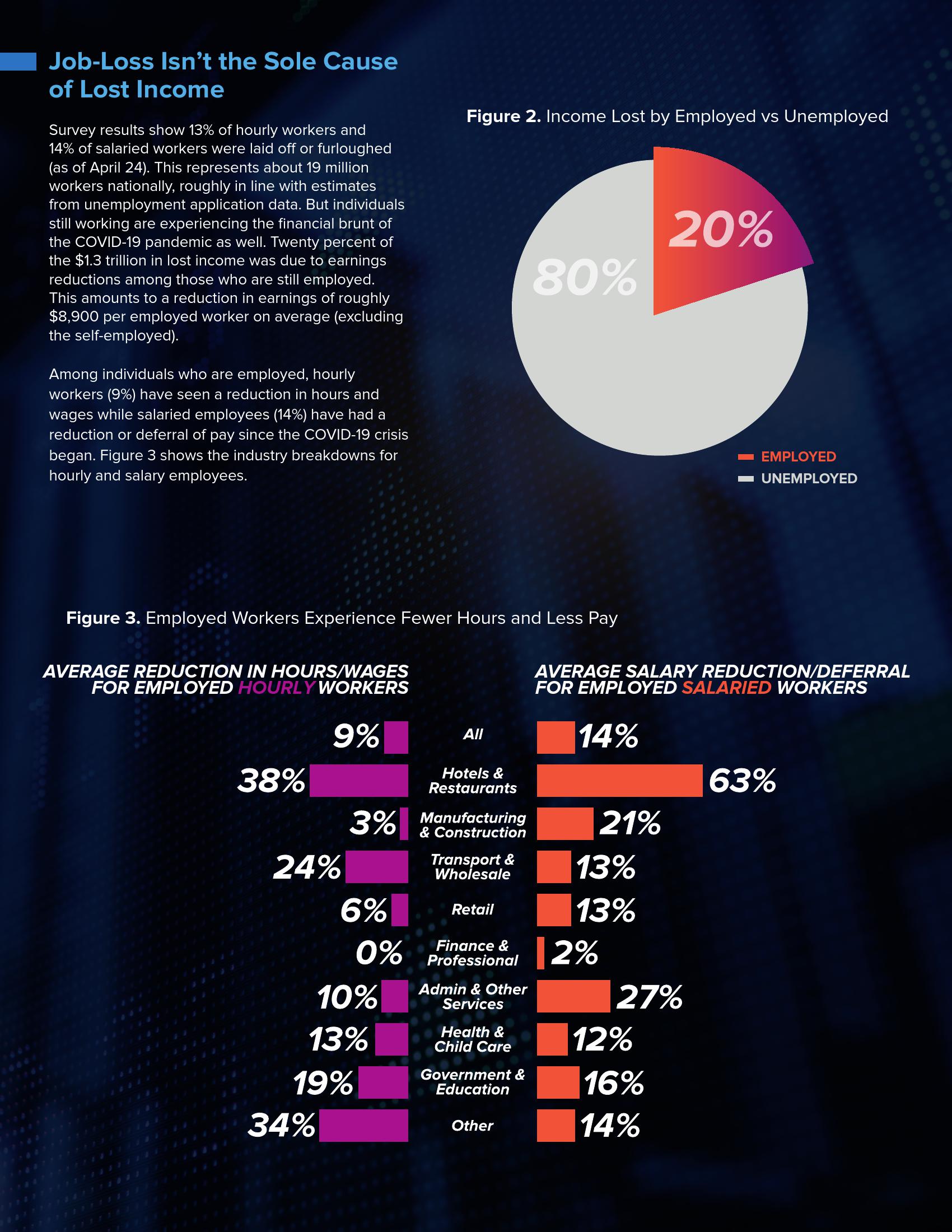 其中大约20%的损失,即2600亿美元,是仍有工作的工人的损失。这些工人要么接受了降薪,要么工时被削减。
