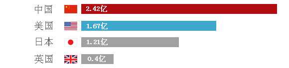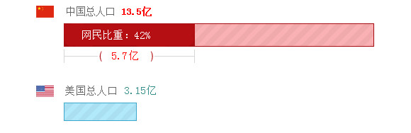 1、中国目前网民所占人口比重为42%。也就是说,中国有大约5.7亿网民。相比而言,美国的总人口也就3.15亿。