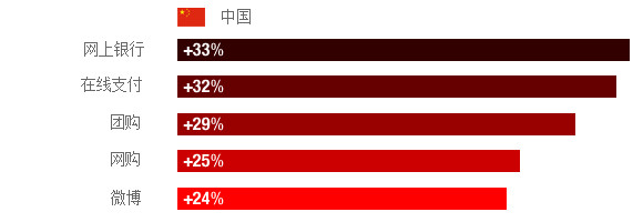 23、59%的中国智能手机用户已经用手机来网购。(来源:中国的社交网络、数字化、移动互联)