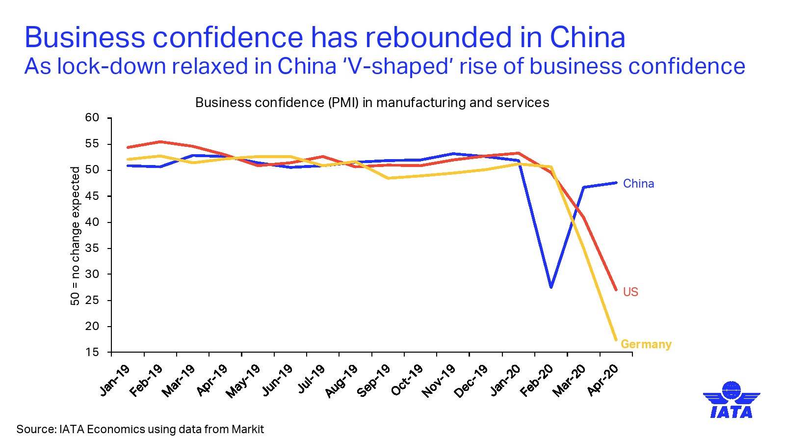 另一方面,中国企业信心回升。随着中国限制措施的放松,商业信心呈V型上升。这给其他国家从疫情中快速恢复提供了可借鉴的经验。