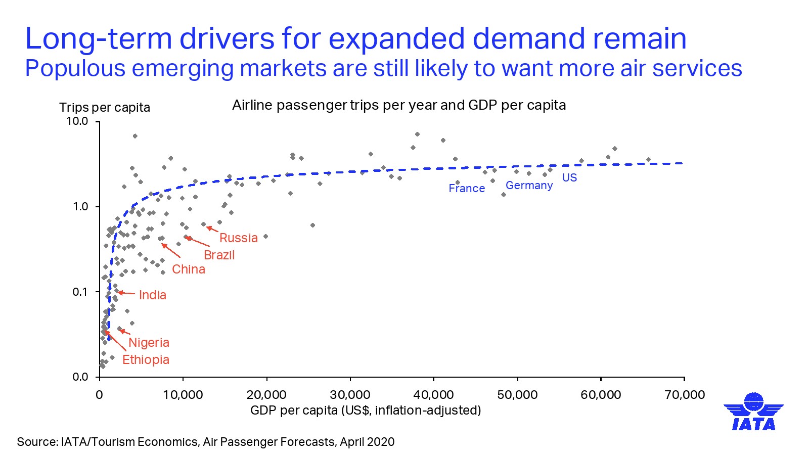 好消息是,扩大需求的长期驱动因素依然存在。人口众多的新兴市场仍可能需要更多航空服务。