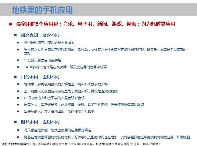 Google在2012年对中国智能手机用户的调研结果中显示,83%的用户会在公共交通工具上使用手机。