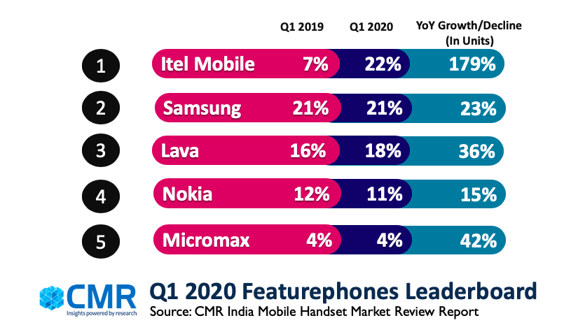 Transsion Group(ITEL、Infinix和Tecno品牌)在智能手机领域的市场份额增长了125%,主要是在低于7000卢比的价格区间。