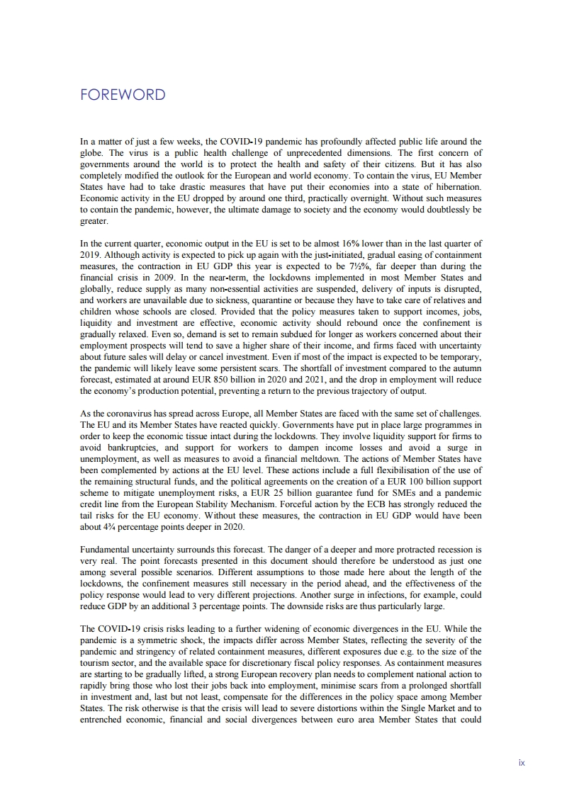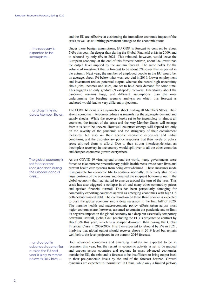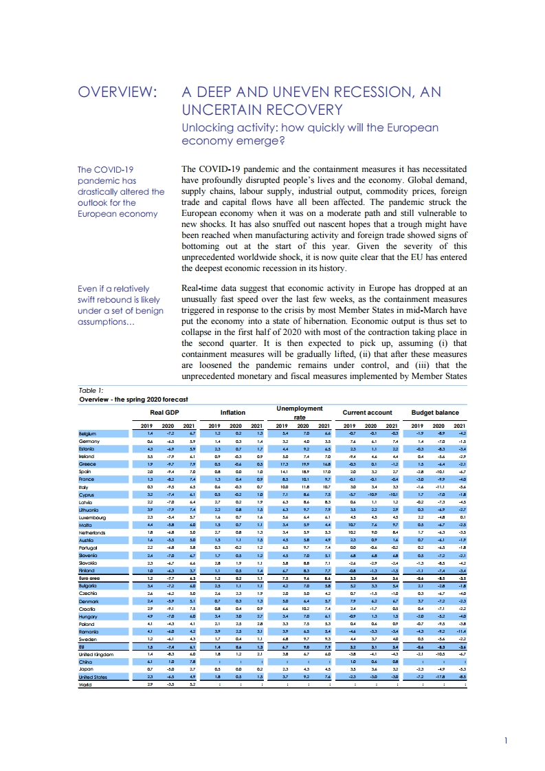 欧委会春季预测报告,称目前遭遇的是历史性规模的萧条。经济委员真蒂洛尼(Paolo Gentiloni)指出,欧洲正经历大萧条以来未曾有过的经济休克。