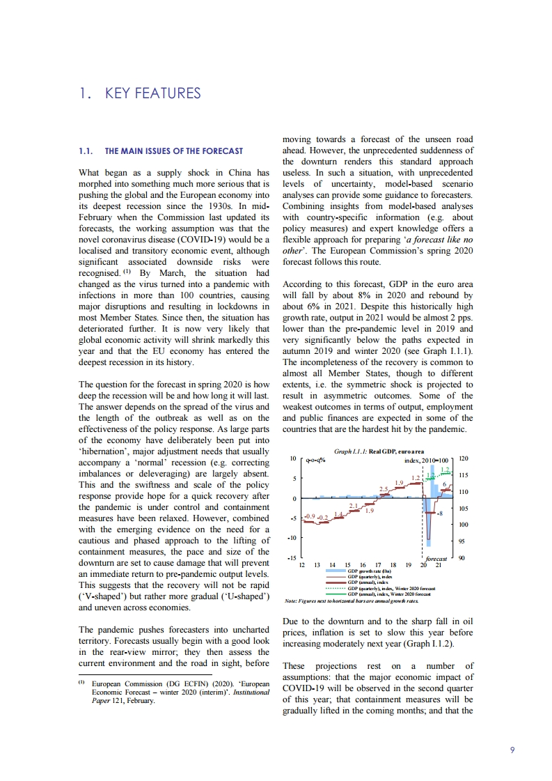 欧盟春季预测报告,受新冠病毒危机影响,欧元区经济今年将萎缩7.7%,来年亦无望完全弥补。