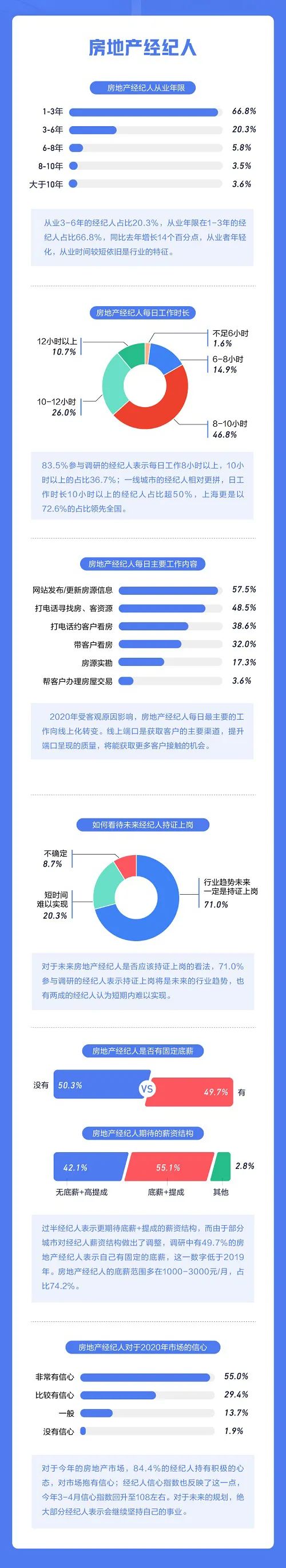 在上百万,甚至上千万交易额的房地产市场,作为最重要的信息及服务提供方,房地产经纪人的生存状况也成为高品质房产经纪服务的重要基础。5月29日,《2020年百万房地产经纪人生存报告》发布,从房地产经纪人群体的收入、学历、住房情况、从业年限、工作时长、成交情况、工作情况等多维度,勾勒出的现下中国房地产经纪人的处境与生态。