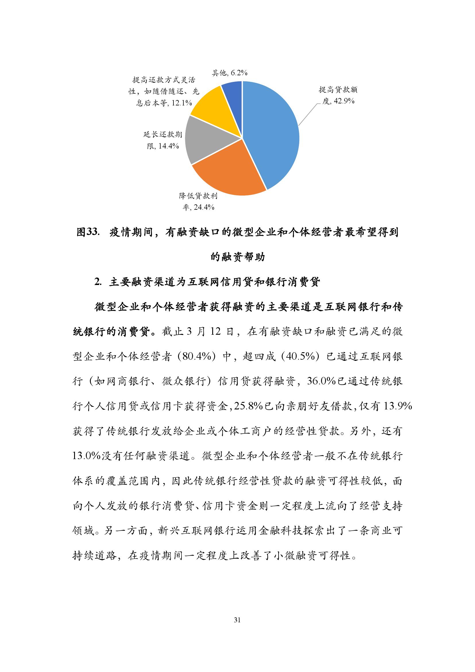 调查显示40%的小微商家都是通过无接触贷款这样一个互联网的方式来获得贷款,70%获得贷款的小微客户都认为可以通过这样一种资金输入的方式渡过难关。