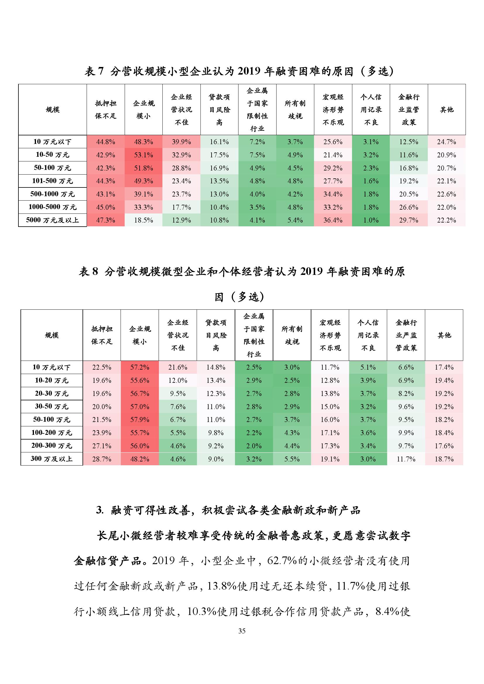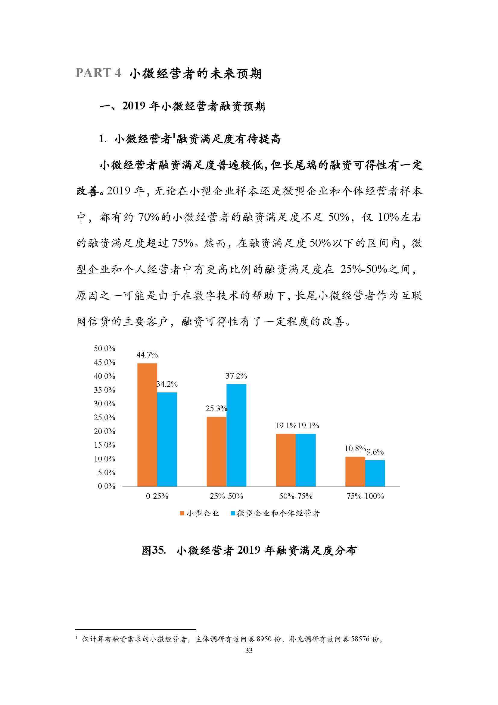 调查显示“小微”经营者的信贷获得情况改善快,是近年来金融普惠政策受益最多的一个群体,超过八成(82.3%)的“小微”经营者认为贷款获取相比3年前更加容易、便捷。不过,报告也明确地指出,“小微”经营者融资难、融资贵、融资慢问题还没有根本缓解。