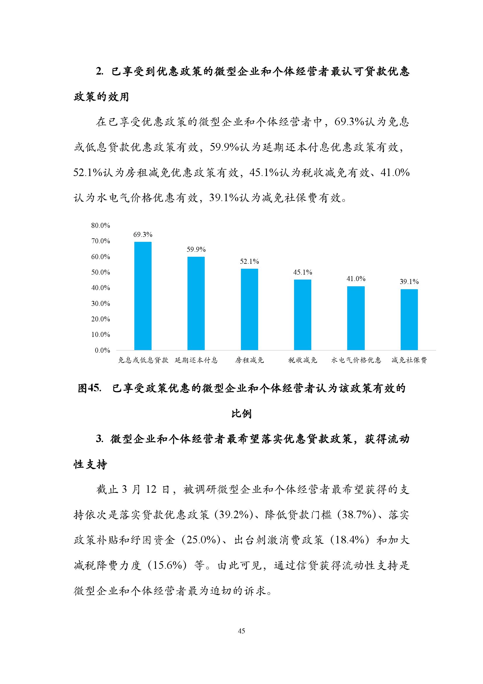 调查显示被小微企业认为落地最及时的两项金融优惠政策是免息或低息贷款和贷款的延期还本付息,在被调查的企业中占比分别是69%和60%,最受小微企业欢迎。