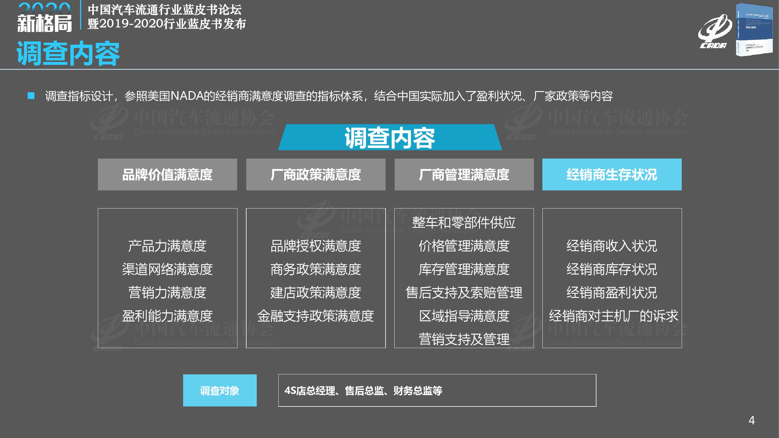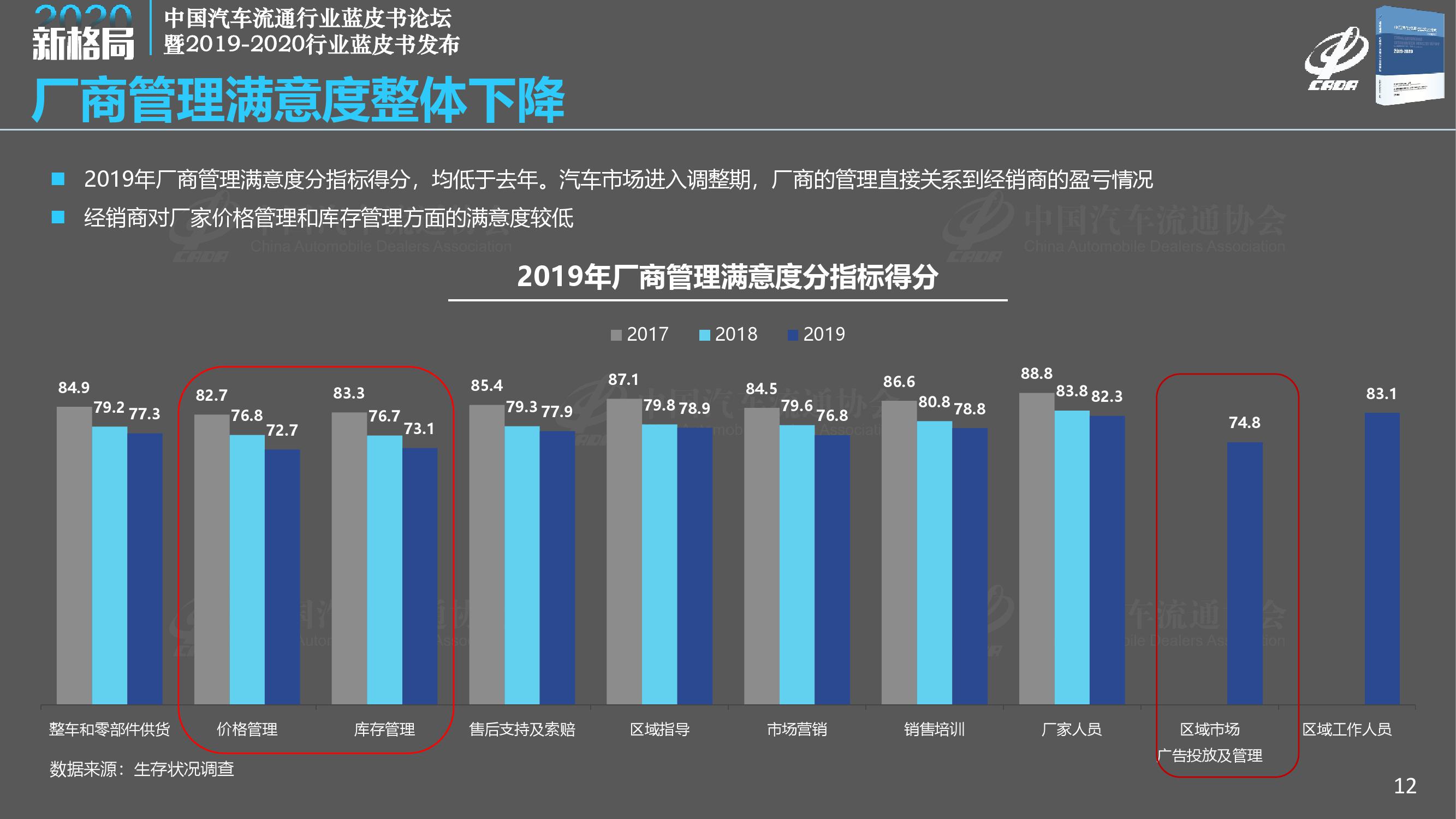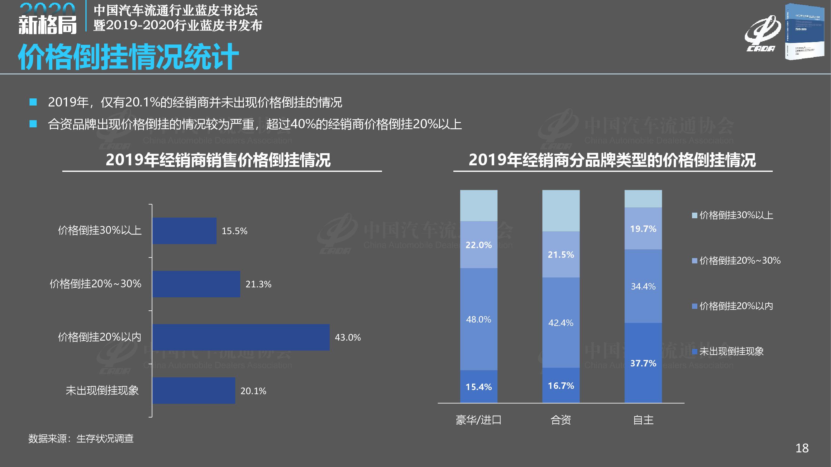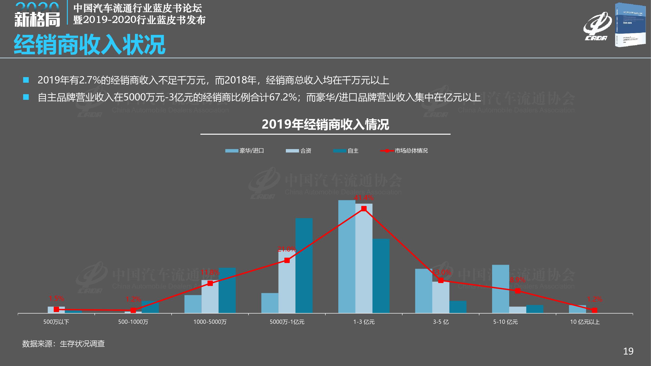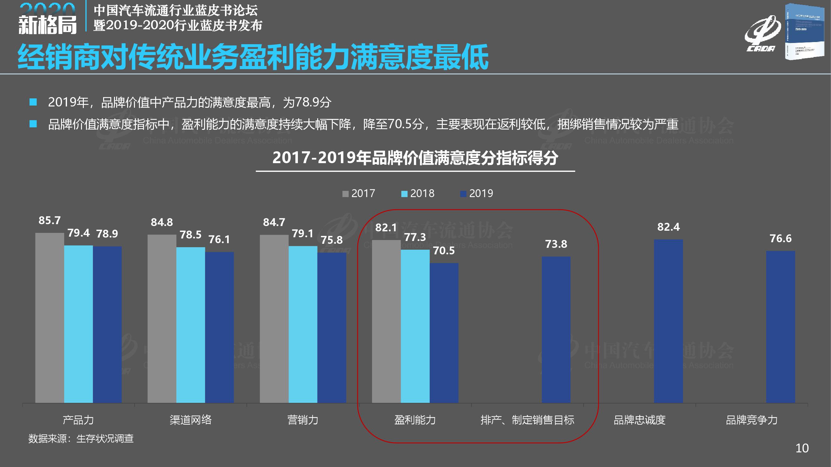 《报告》调查显示,2019年经销商总体满意度得分为78.1分,比去年大幅下降1.2分;2019年完成全年销售目标的经销商占比仅为28.9%,另有7.4%的经销商目标完成率在50%以下;相比2018年,2019年经销商的亏损面扩大至41.0%,亏损比例大幅增加,而盈利经销商比例减少至29.7%。