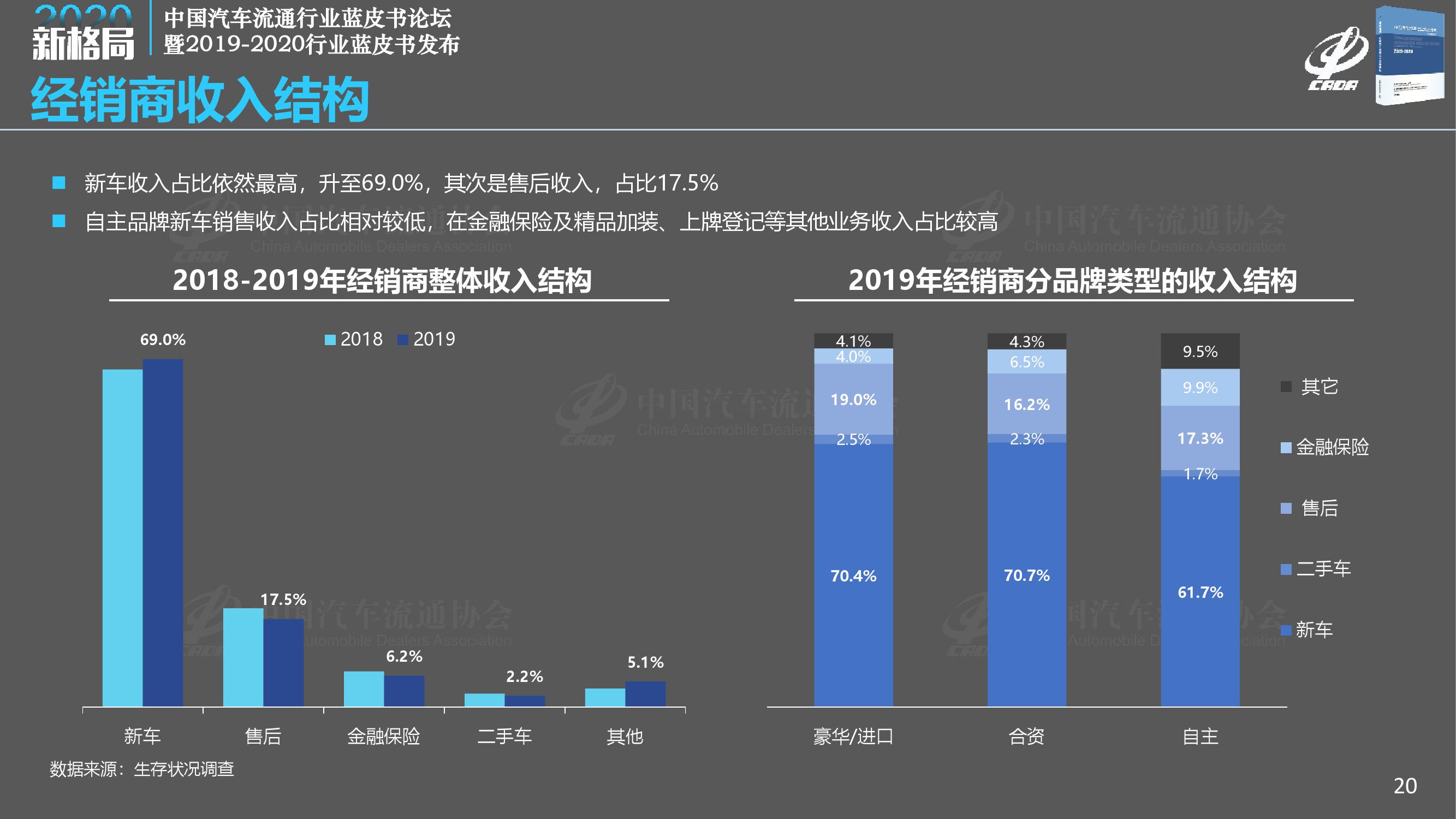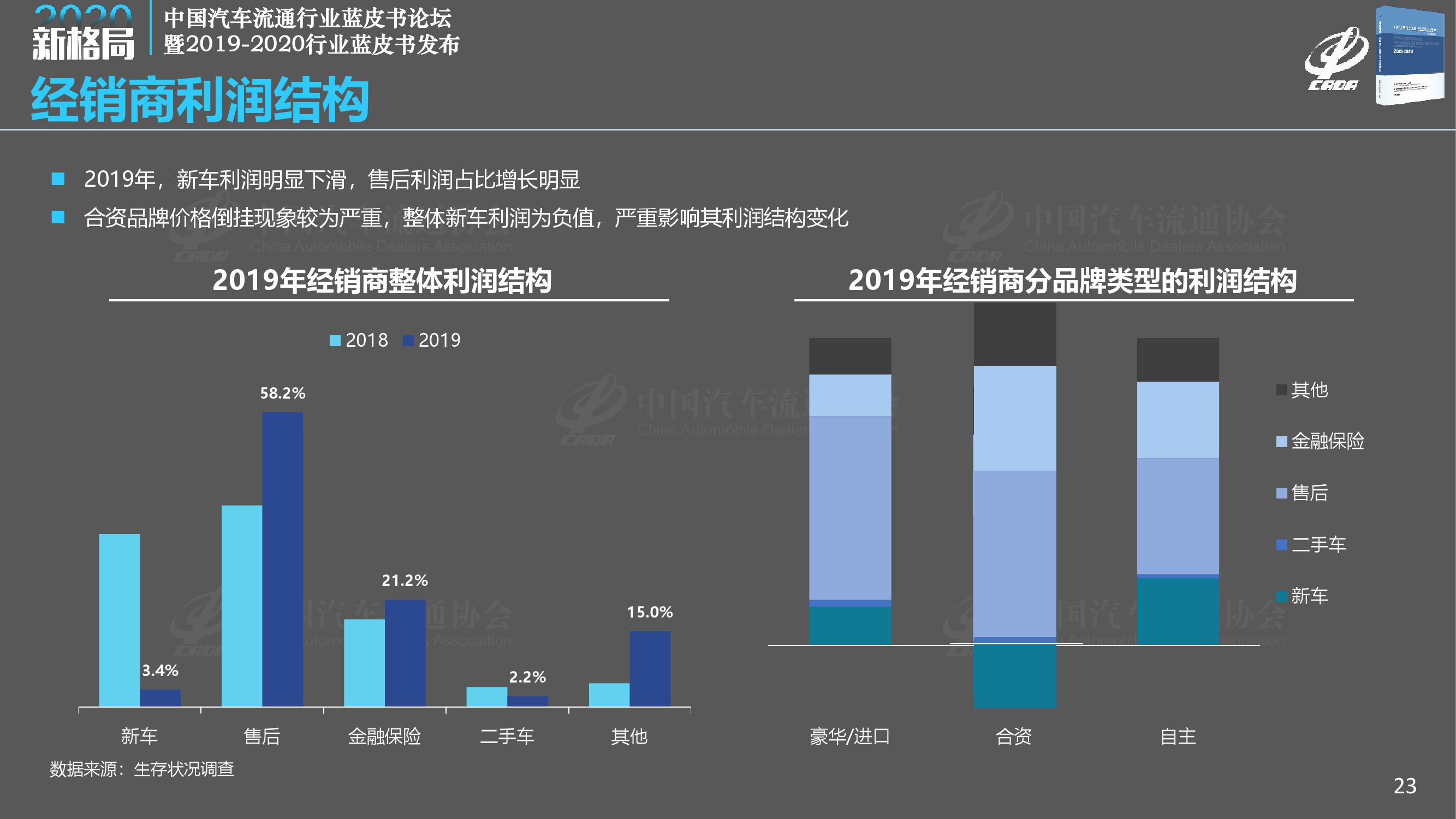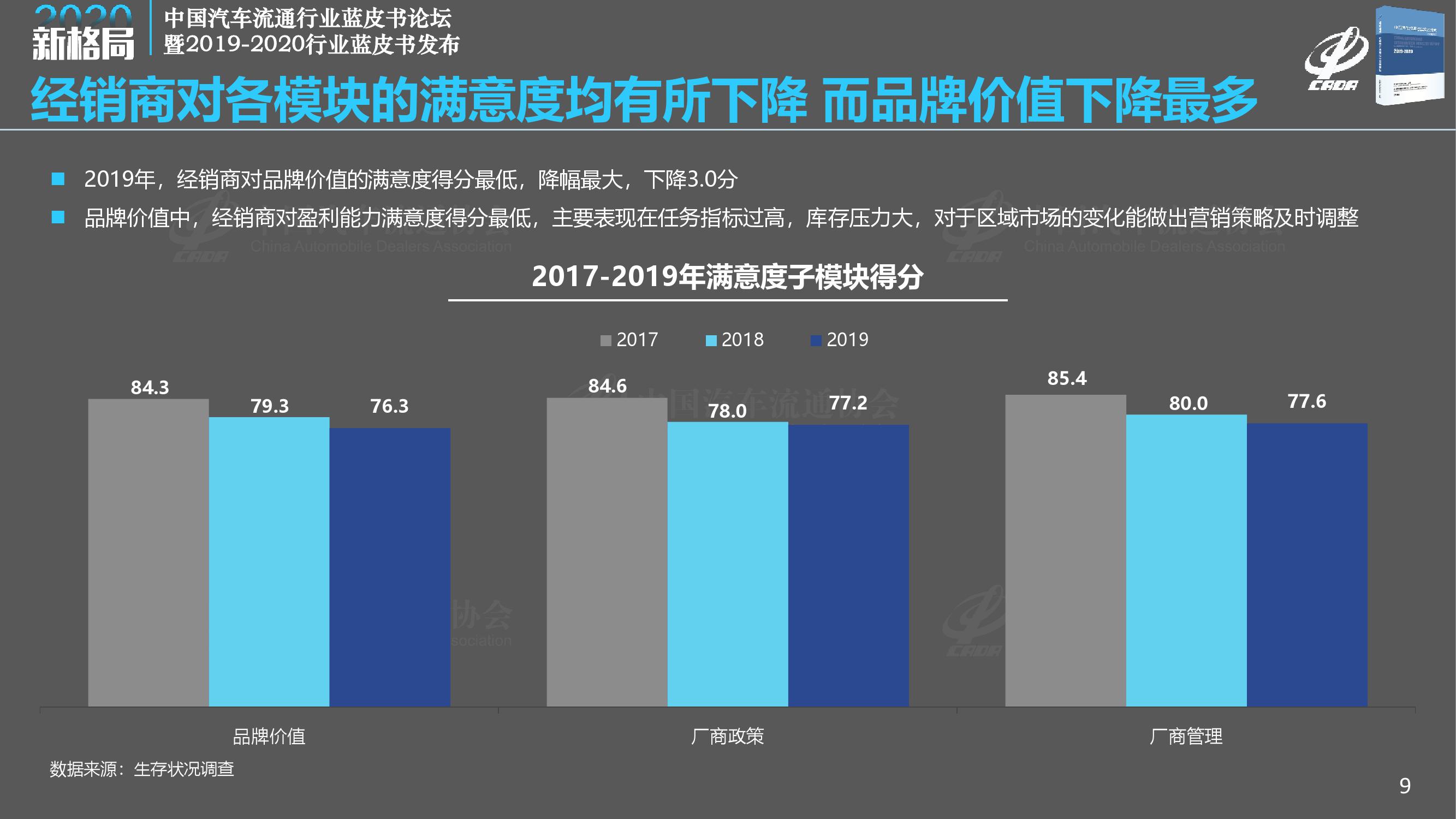 《报告》指出,2019年汽车消费市场出现持续下滑,众多经销商处于亏损状态。传统经销商业务盈利能力下降,市场竞争加剧,国六排放标准、新能源补贴退坡等相关政策相继实施,供需矛盾突出,经销商以价换量,市场竞争加剧,厂家和经销商的生存状况受到了前所未有的挑战。