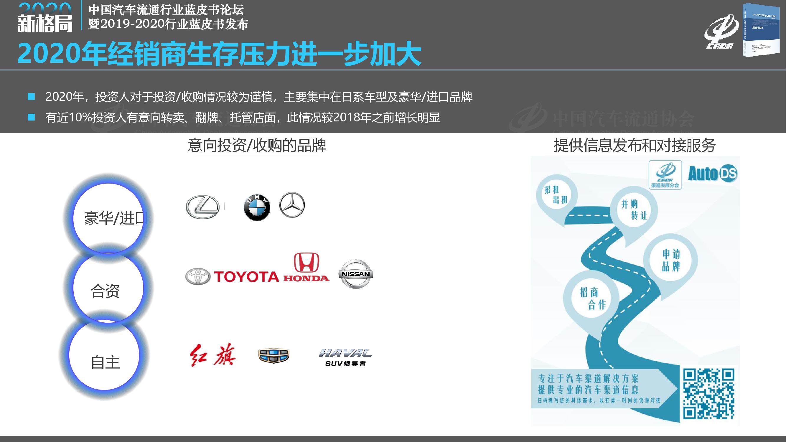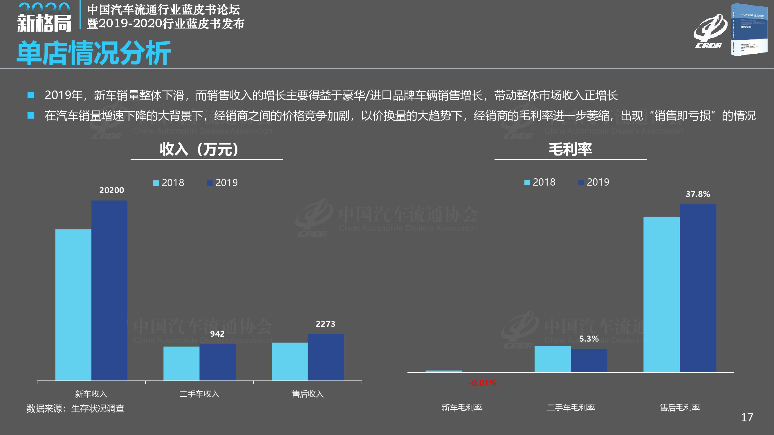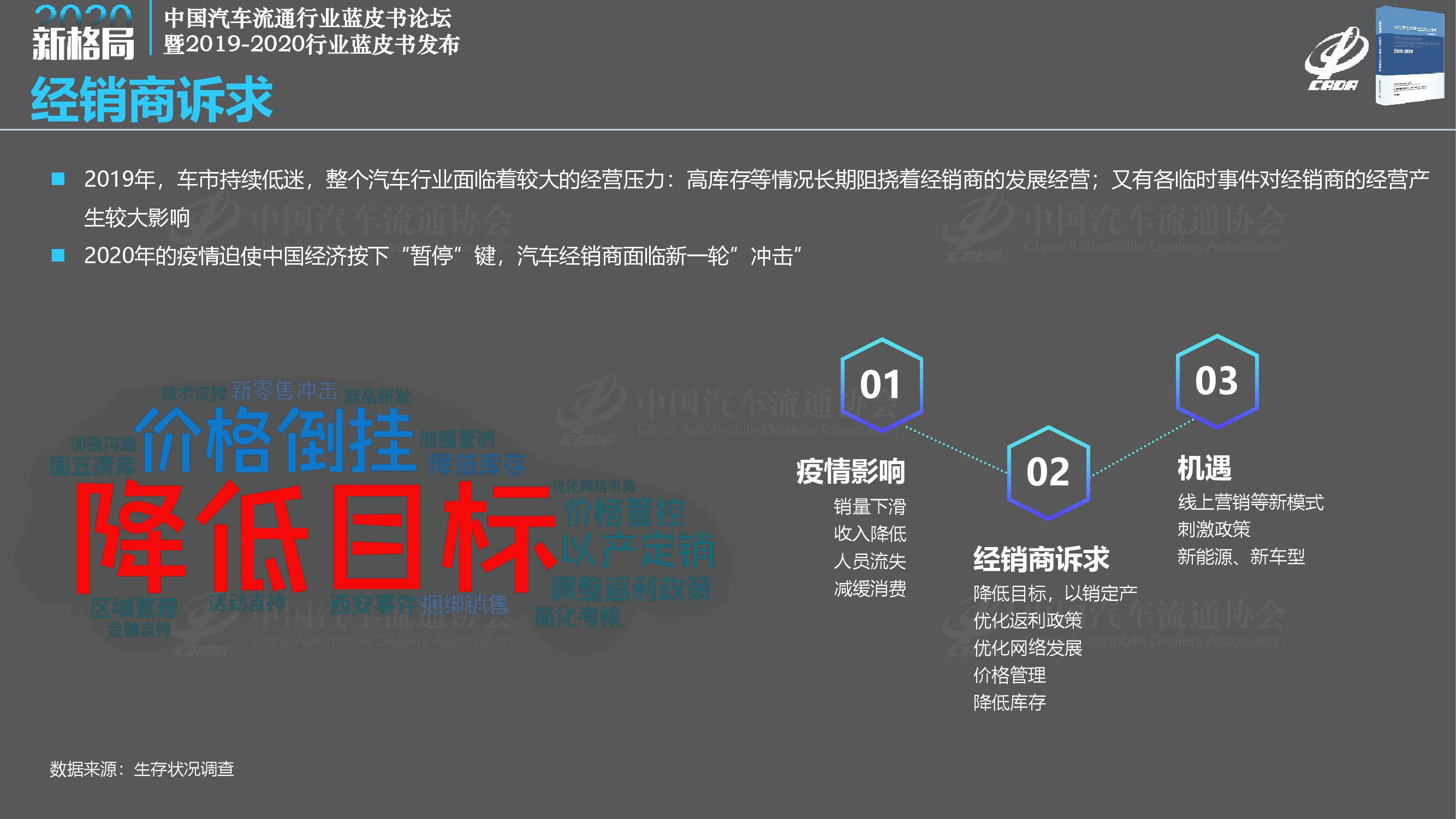 《报告》指出,2019年汽车消费市场出现持续下滑,众多经销商处于亏损状态。传统经销商业务盈利能力下降,市场竞争加剧,国六排放标准、新能源补贴退坡等相关政策相继实施,供需矛盾突出,经销商以价换量,市场竞争加剧,厂家和经销商的生存状况受到了前所未有的挑战。
