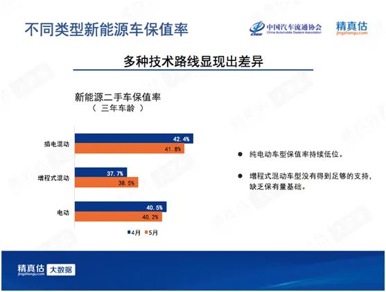 两会期间,车企代表在提案中讲到插电混动车型受到政策歧视,在路权等方面与电动汽车区别对待。如果从数据上看,插电混动车型反而保值率更高。由此可见,适用面更广的插电混动车型受到了市场认可。反而是备受呵护的纯电动车的保值率更低。开放、多元,应成为整个新能源汽车市场健康发展的前提。增程式混动车型虽然被寄予很高的期望,但保有量仍然很低,保值率也低于插电混动车型。