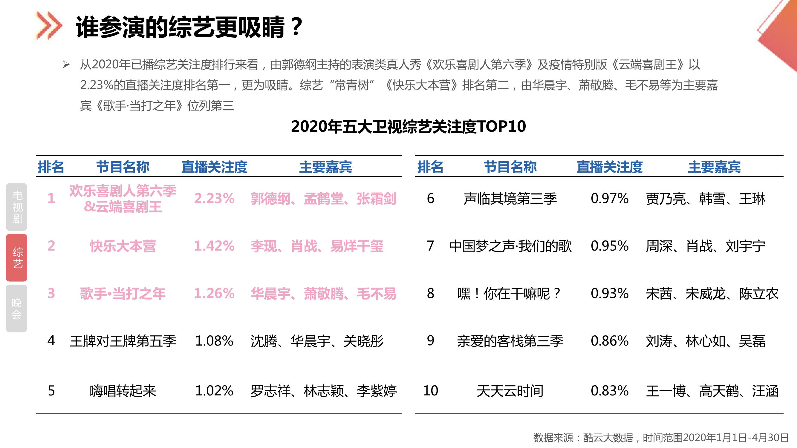 酷云互动:2020年1-4月明星影响力洞察报告 PDF版本下载点击:https://t.zsxq.com/3R7y3FU PDF版本将分享到199IT知识星球,扫描下面二维码即可! 更多阅读:酷云互动:70周年献礼剧洞察报告酷云互动:中国电视用户家庭差异洞察报告酷云互动:甜宠剧分析报告Facebook:2021年游戏营销洞察报告酷云互动:2020年4-5月智能电视广告投放月度风向标酷云互动:从现在到未来 大数据正在革新文娱产业德勤咨询&京东:中国汽车后市场物流服务洞察报告埃森哲:2018中国旅游业洞察报告下一站去哪儿:中国千禧世代旅行者洞察报告InMobi:2017化妆品移动营销洞察报告360智库:2016年中国互联网用户消费行为洞察报告今日头条:2017信用卡兴趣人群洞察报告酷云互动:疫情之下的下沉市场酷云互动:用户大屏触媒洞察分析酷云互动:2020年7-8月智能电视全场景月度风向标