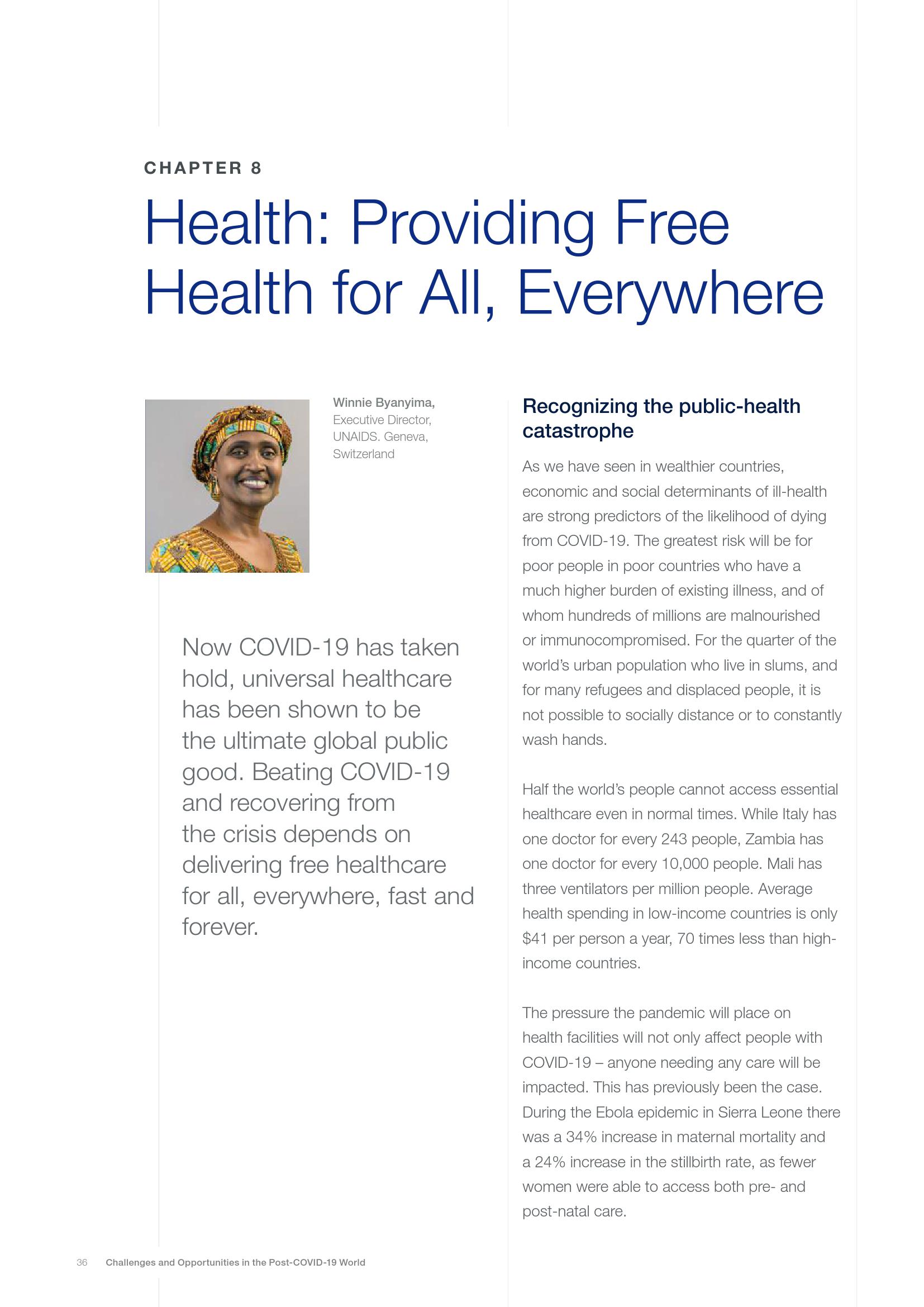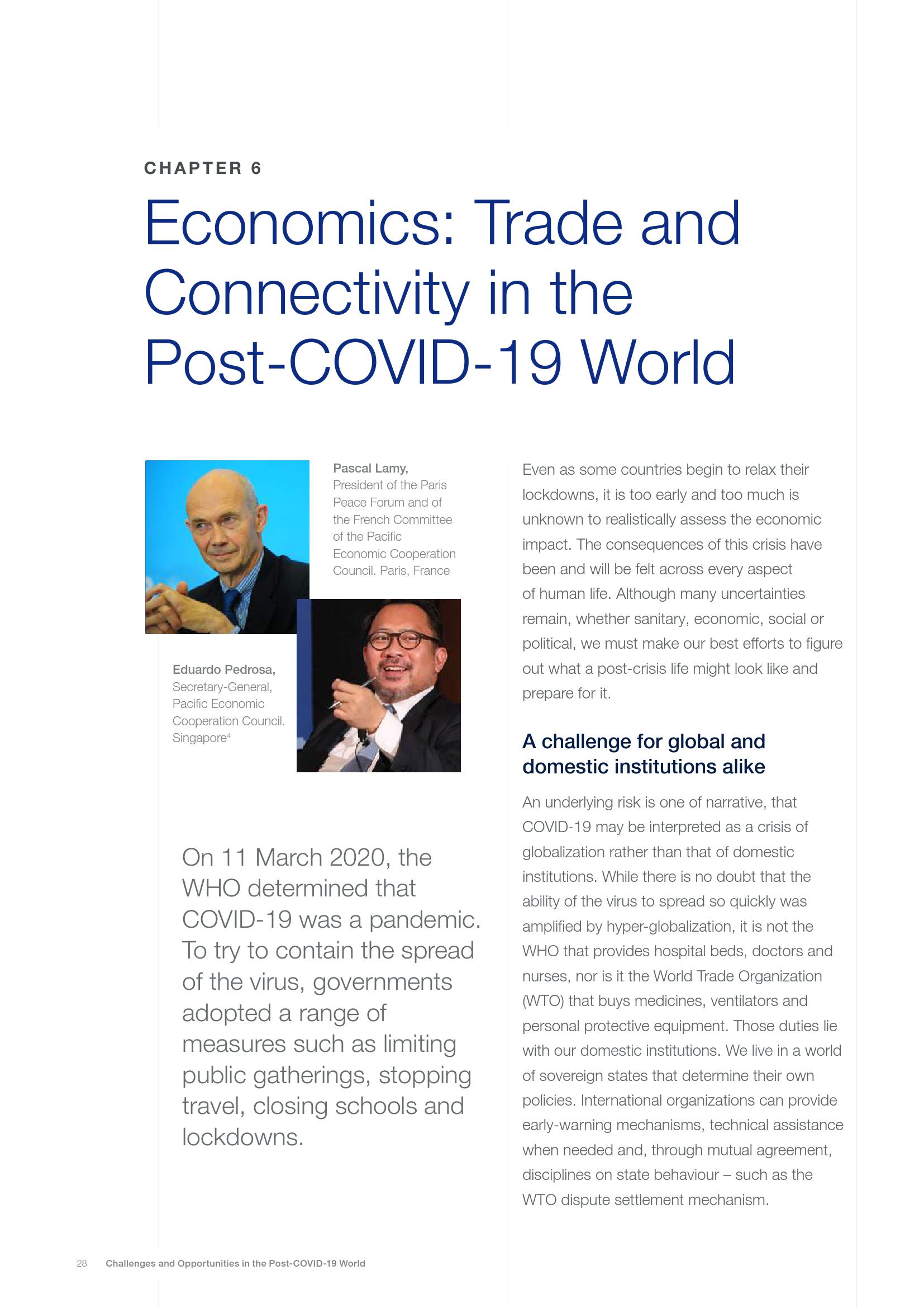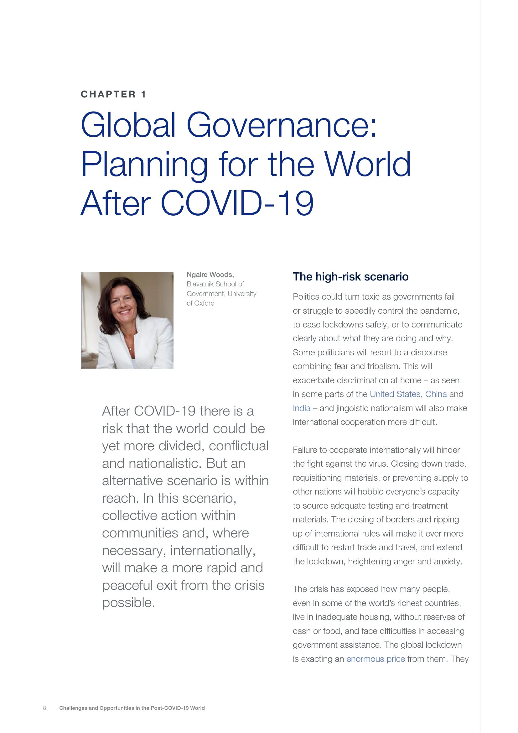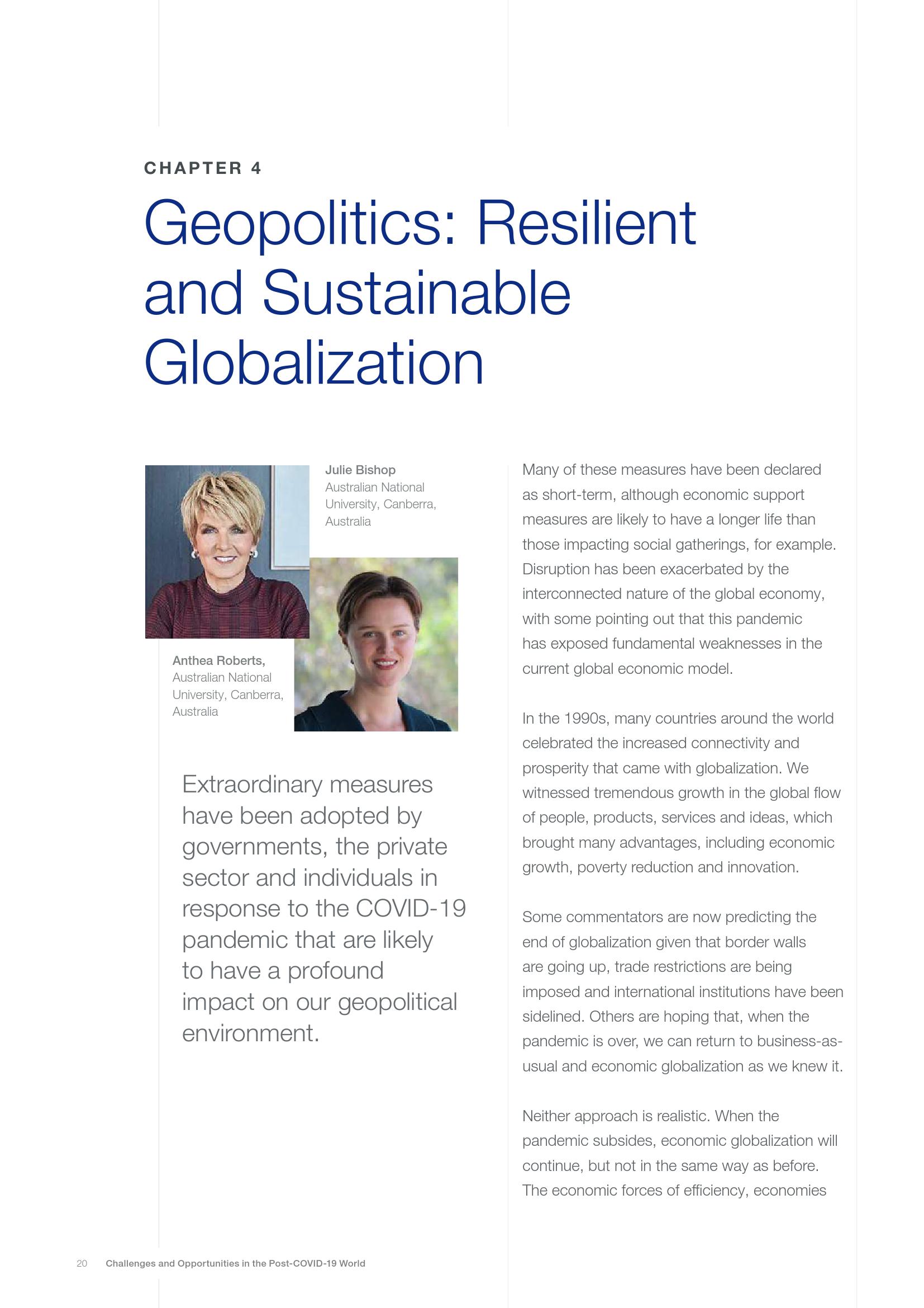 报告《后疫情时代的挑战和机遇》借鉴思想领袖、科学家和研究人员的经验与见解,阐述了正在涌现的新机遇,以共同塑造一个繁荣、平等和可持续的世界。