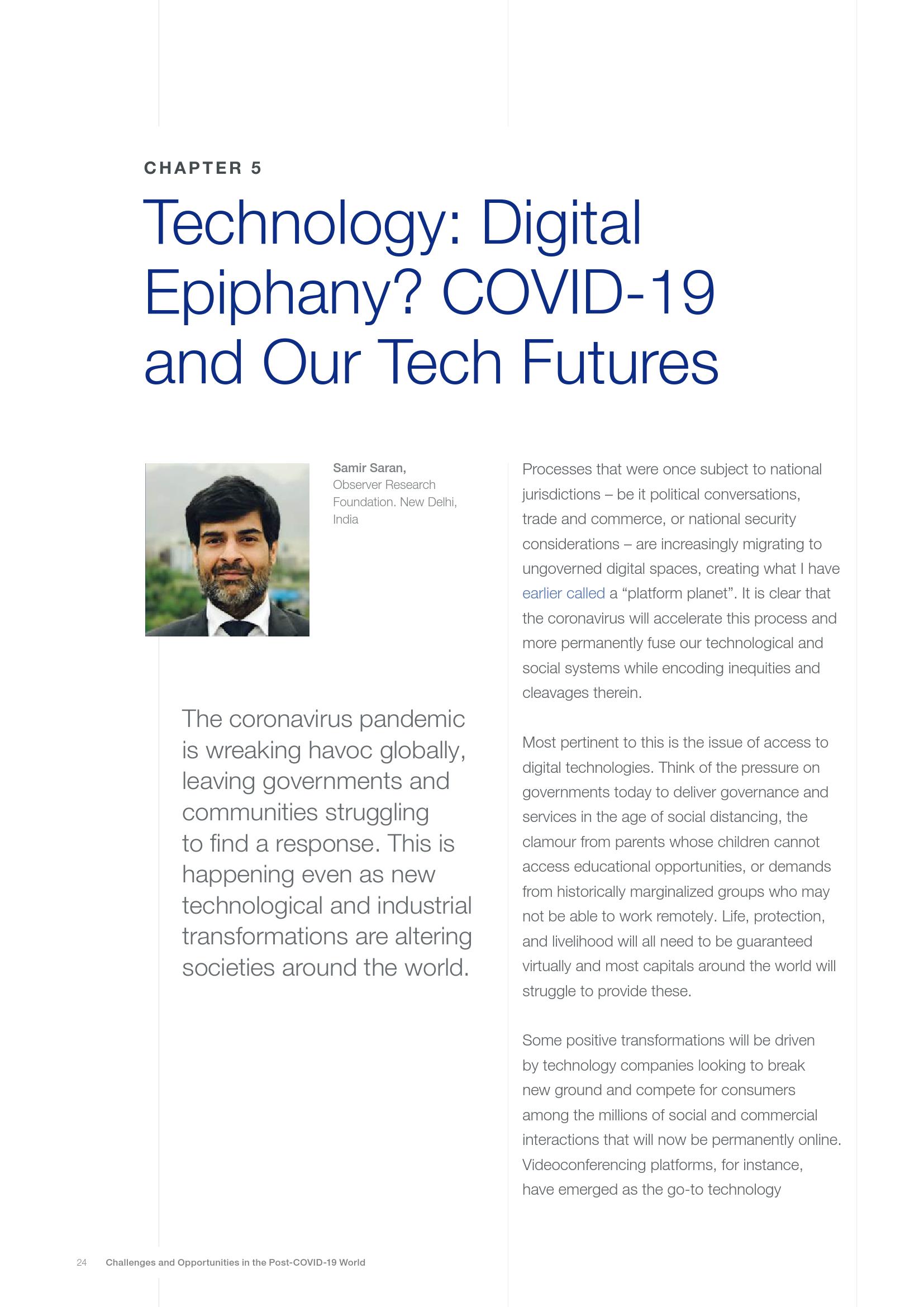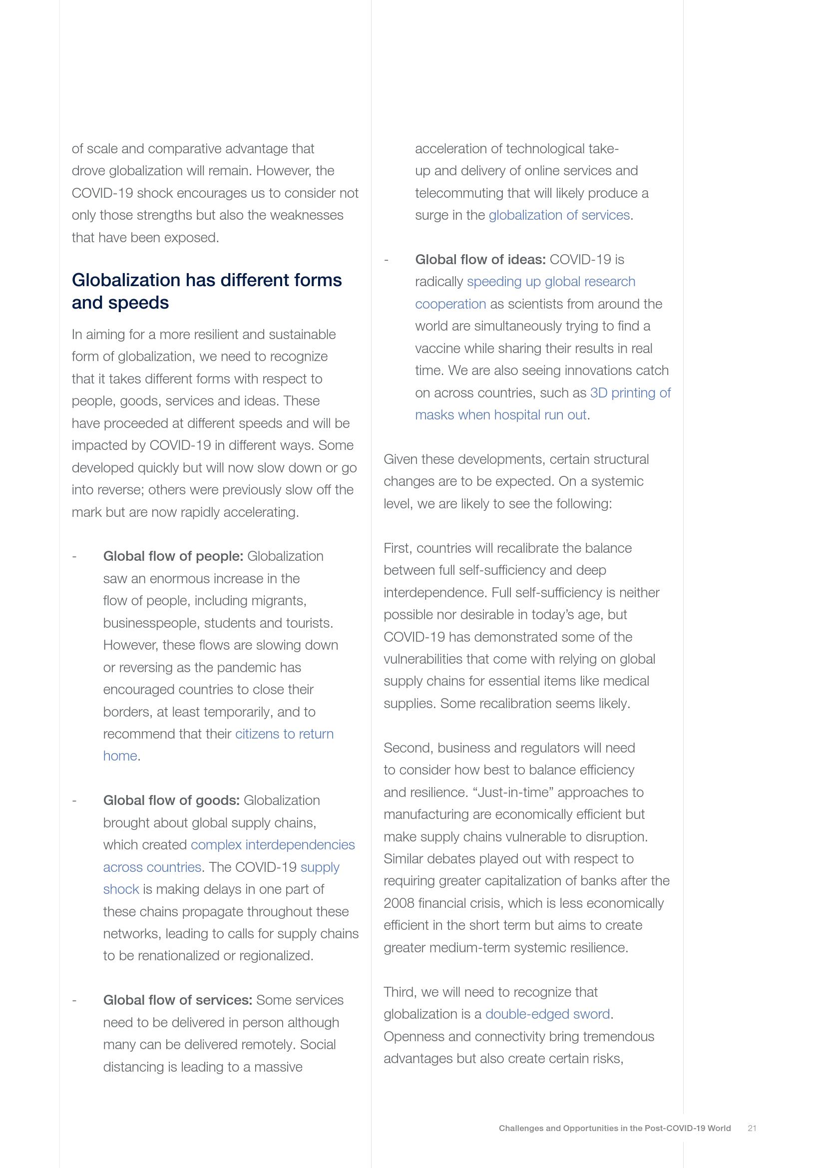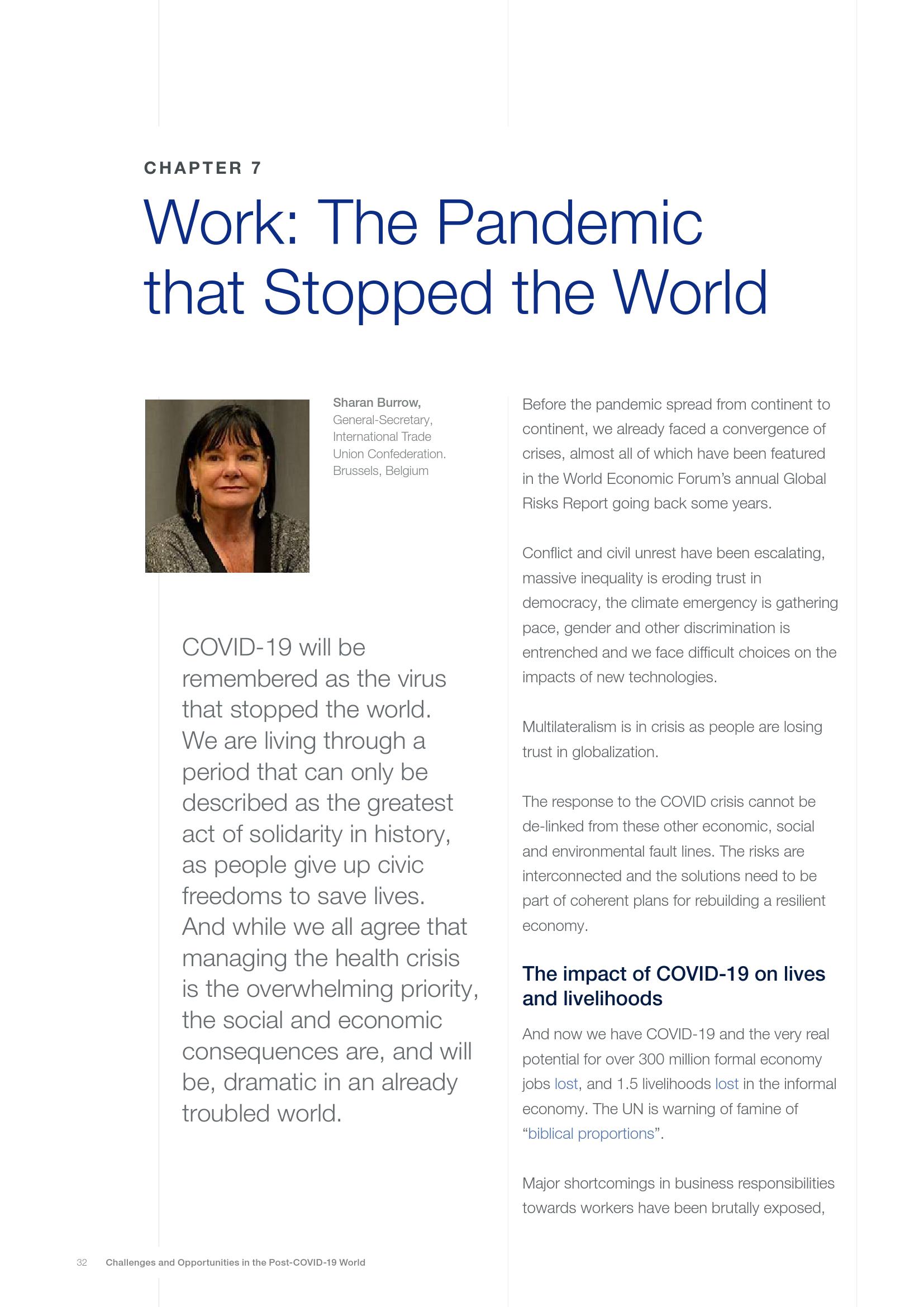 报告《后疫情时代的挑战和机遇》借鉴思想领袖、科学家和研究人员的经验与见解,阐述了正在涌现的新机遇,以共同塑造一个繁荣、平等和可持续的世界。