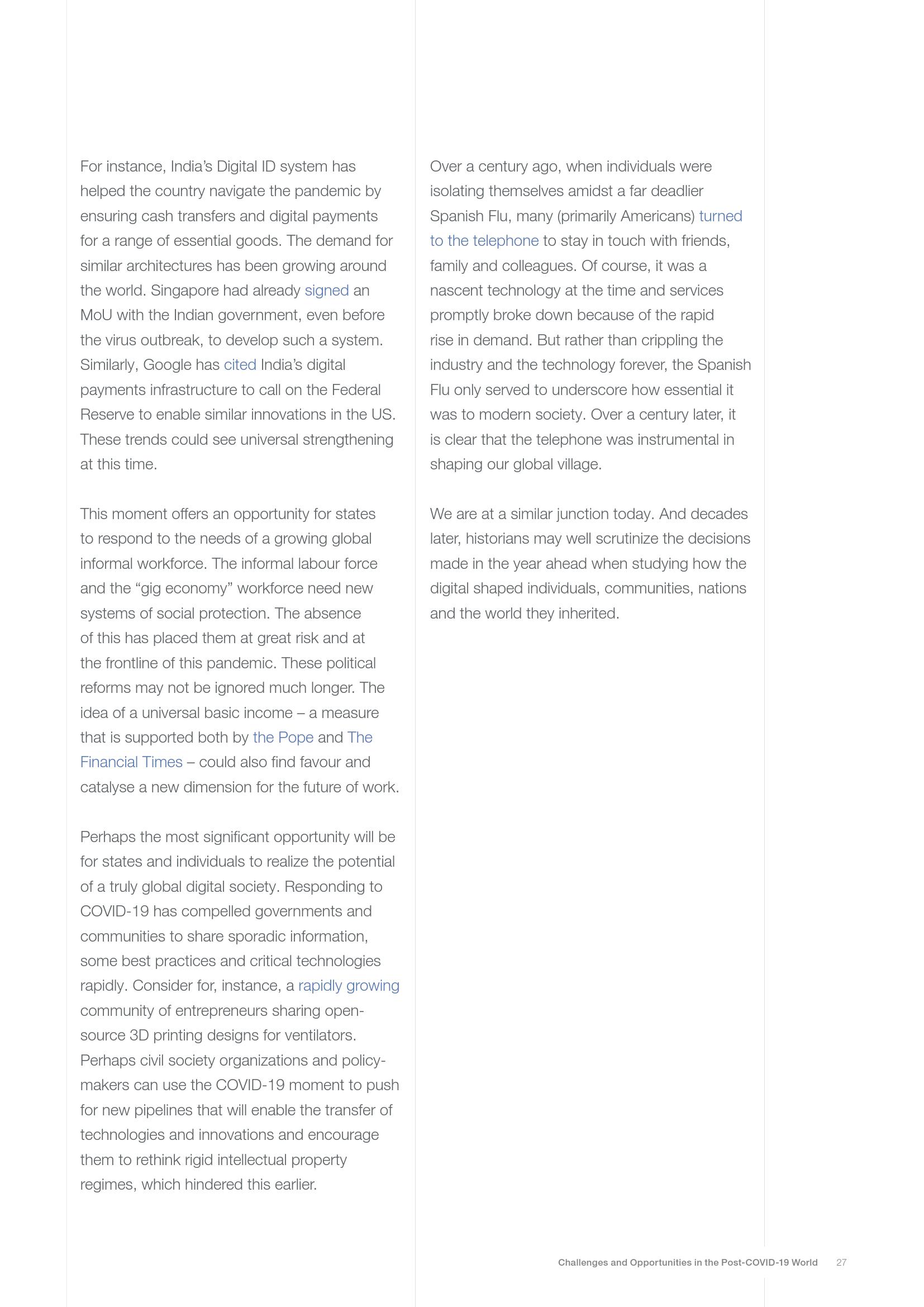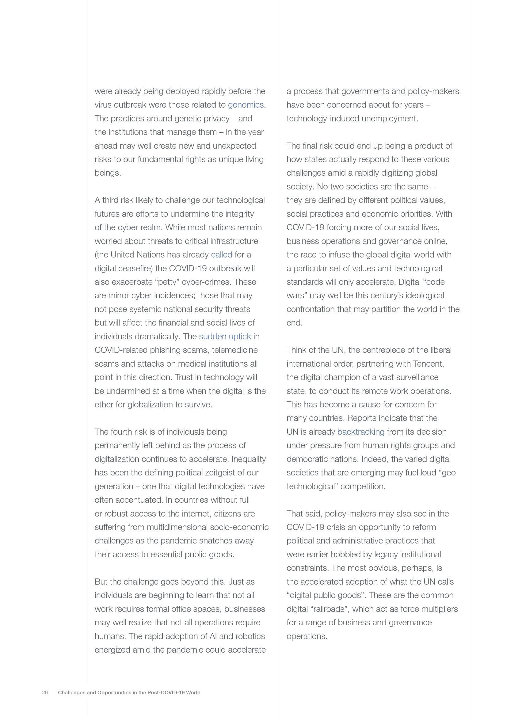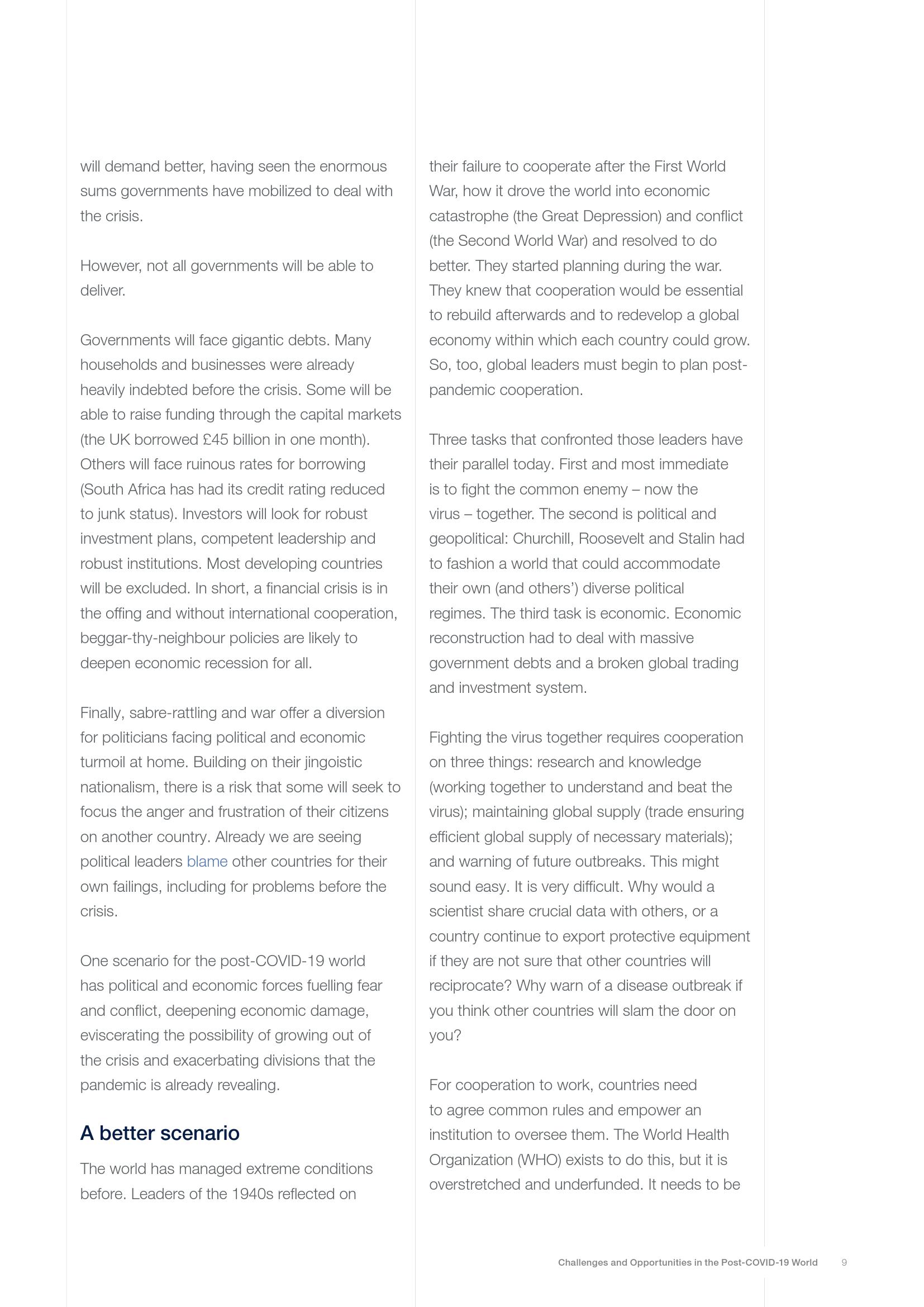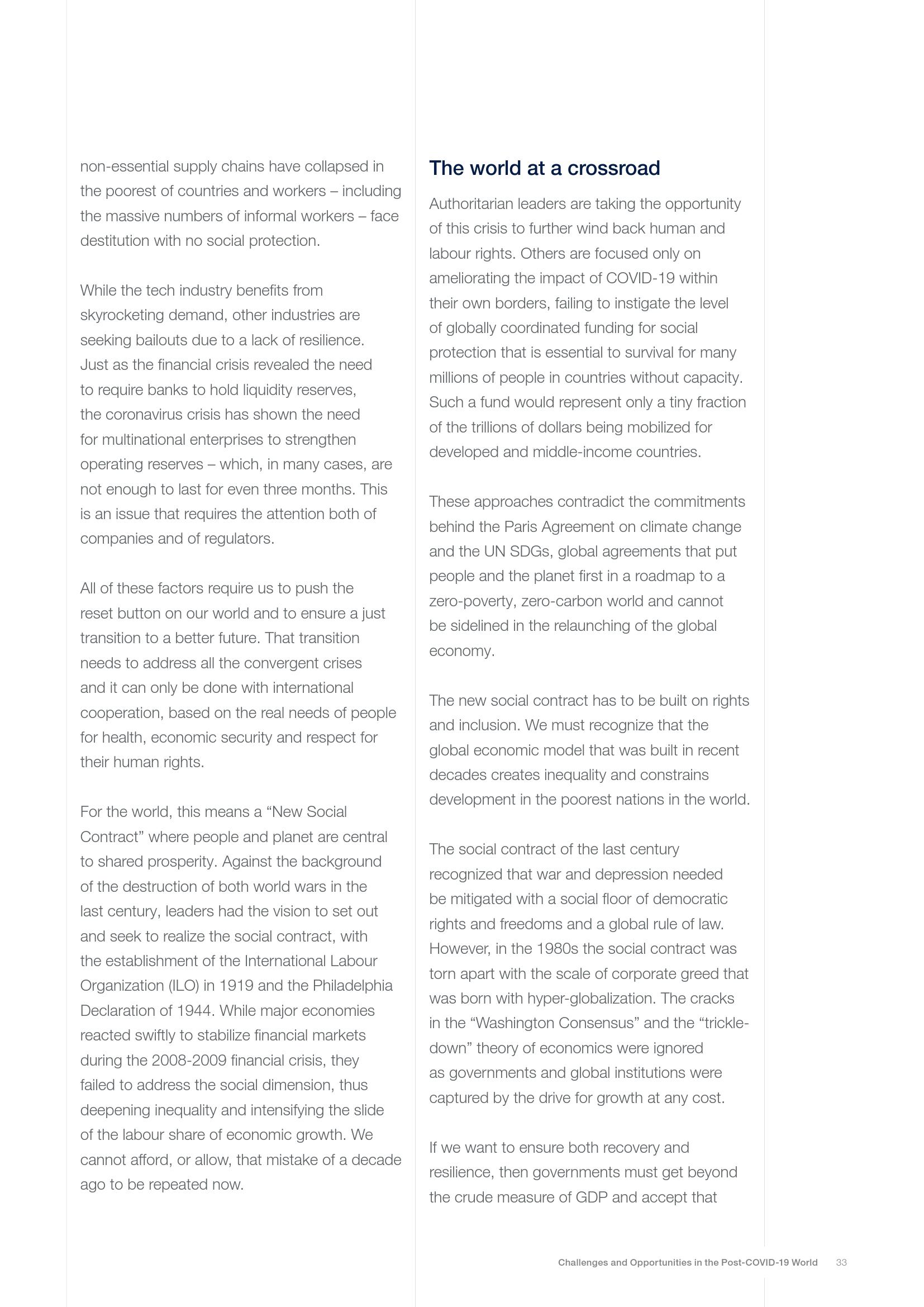 报告《后疫情时代的挑战和机遇》借鉴思想领袖、科学家和研究人员的经验与见解,阐述了正在涌现的新机遇,以共同塑造一个繁荣、平等和可持续的世界。