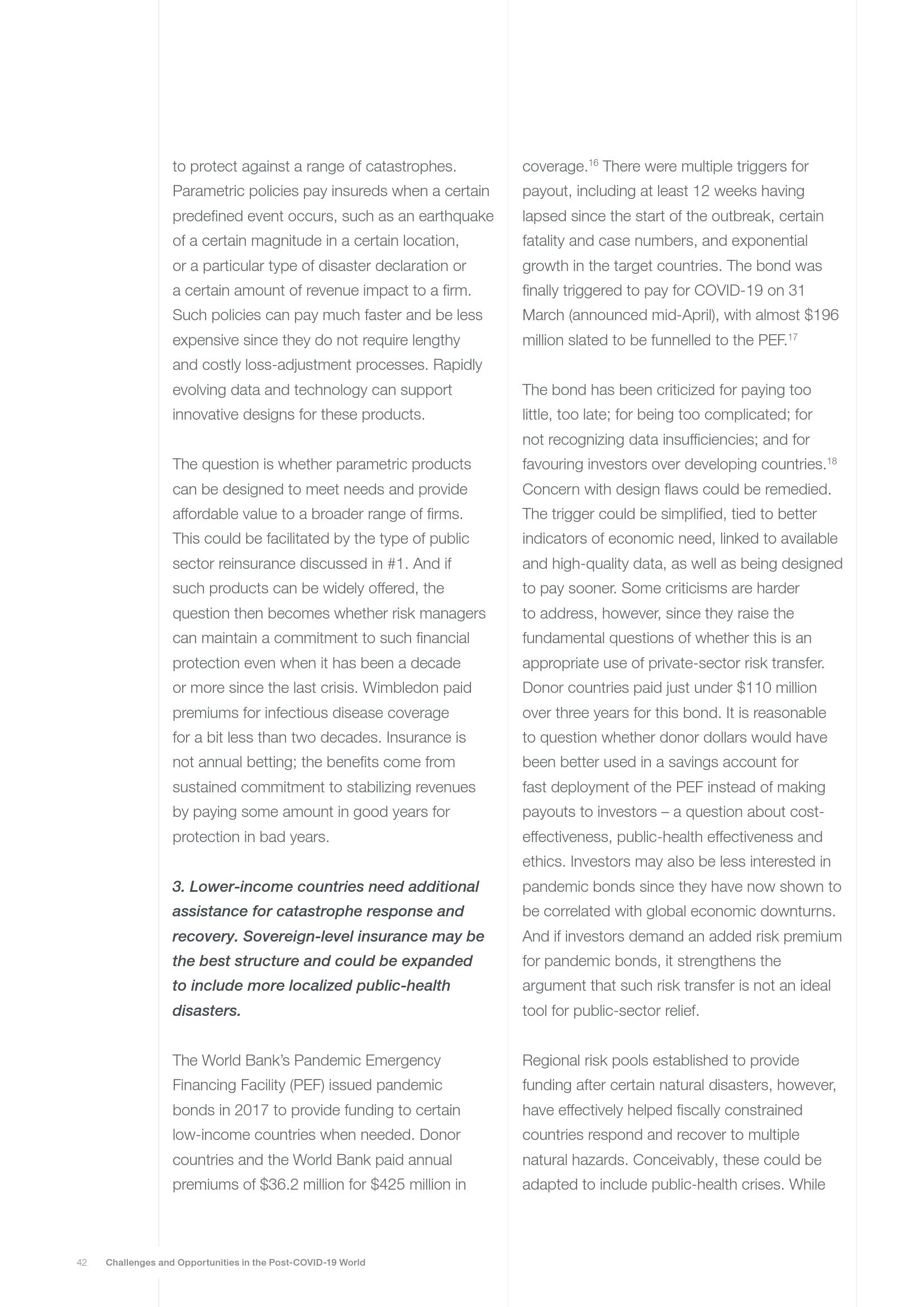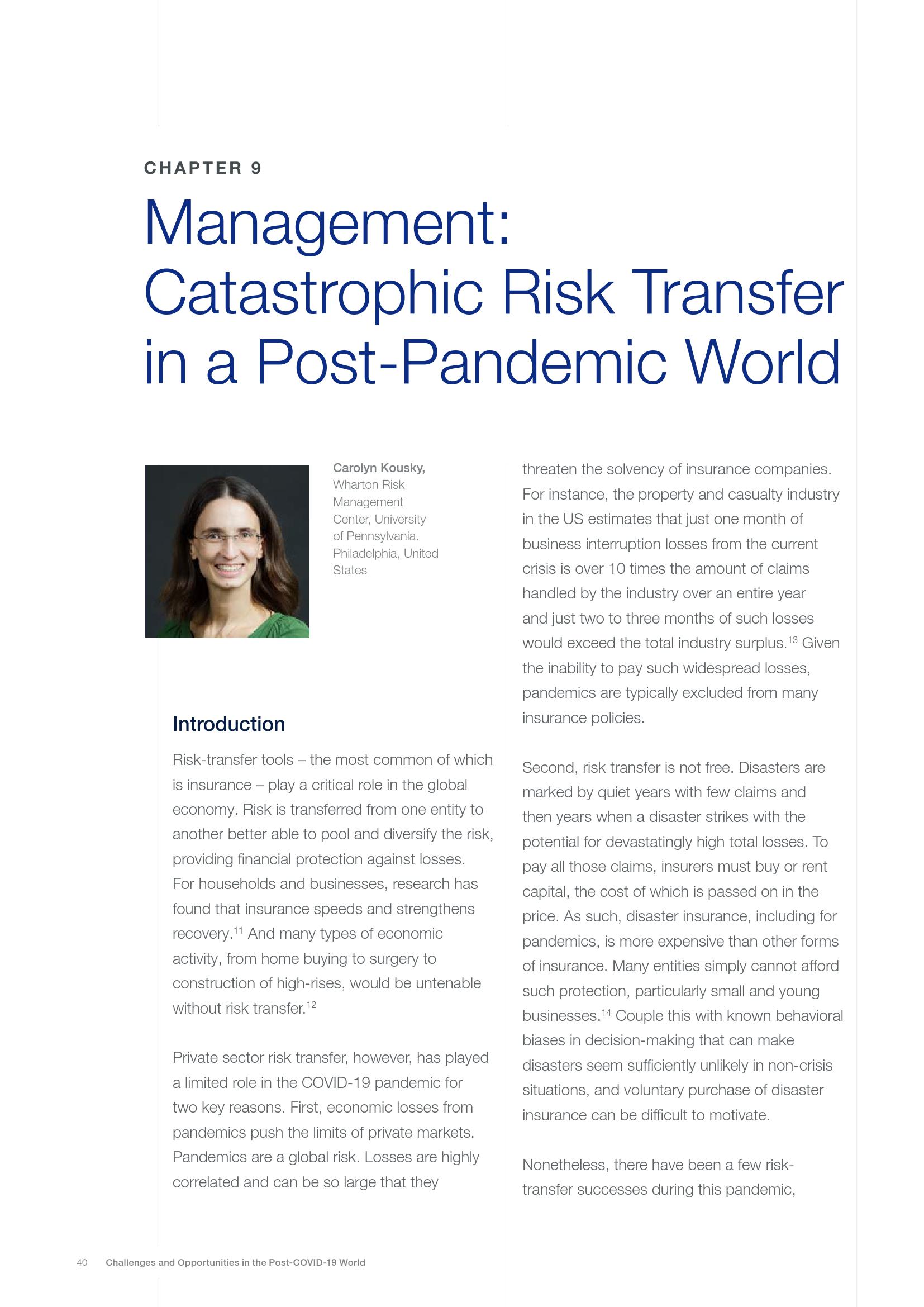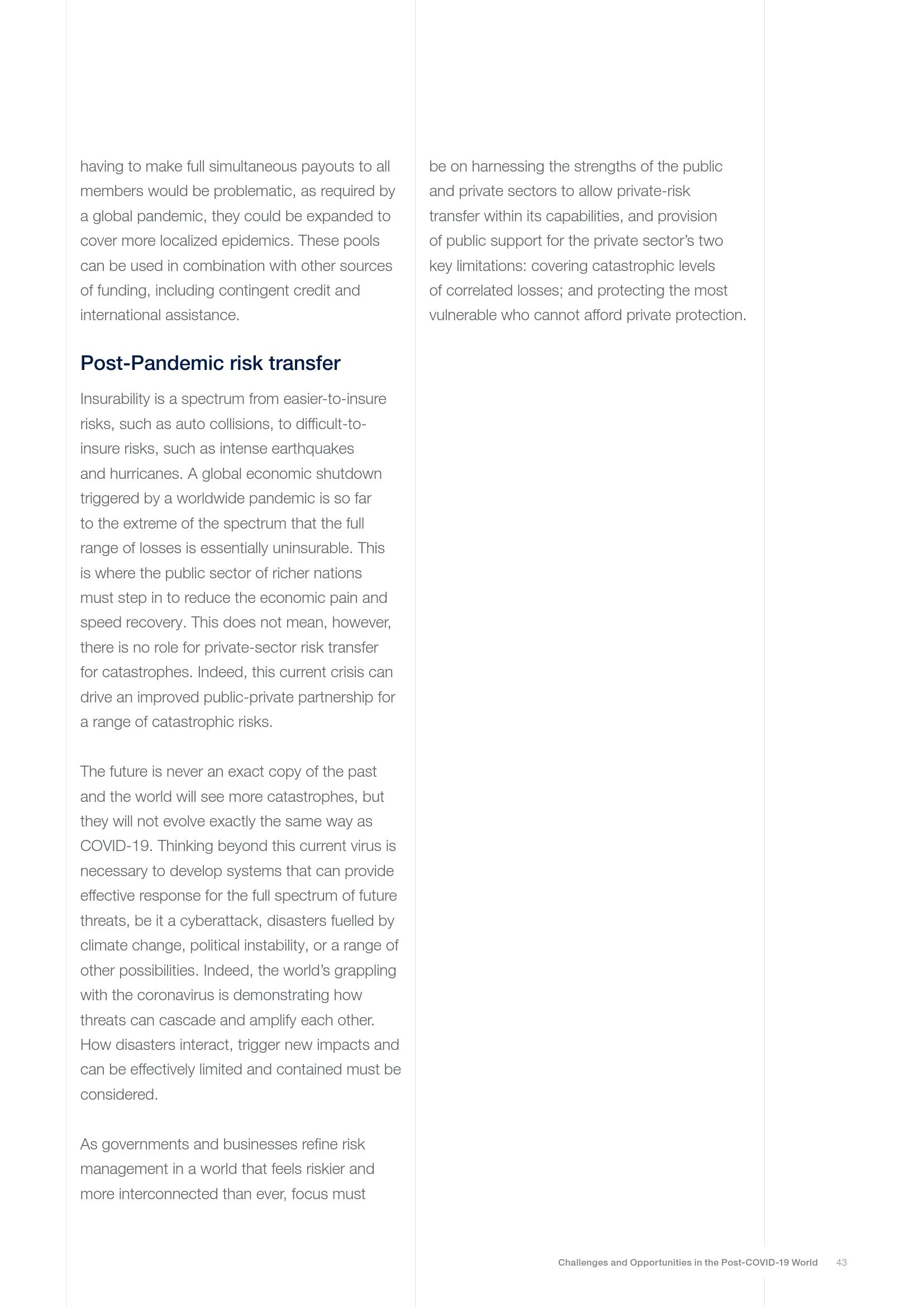 威达信集团总裁兼首席执行官John Doyle说:“在新冠疫情爆发之前,各组织已经面临着错综复杂、高度互联的全球风险格局了。从网络威胁到供应链,再到员工的身心健康,企业现在需要反思此前所依赖的许多架构。为了创造各项条件,加速经济复苏和建设更具韧性的未来,政府和私营部门必须展开更加有效的合作。除了要大力投资以改善医疗体系、基础设施和科学技术外,疫情带来的教训之一就是各国社会必须提高韧性,要能够抵御未来大流行病和其他重大危机。”