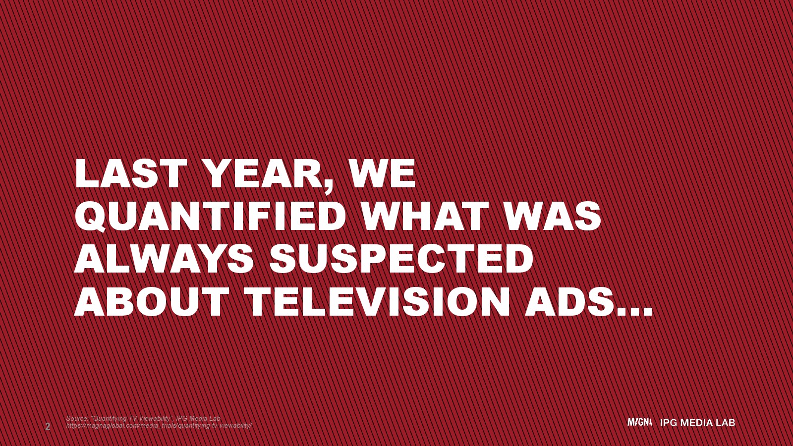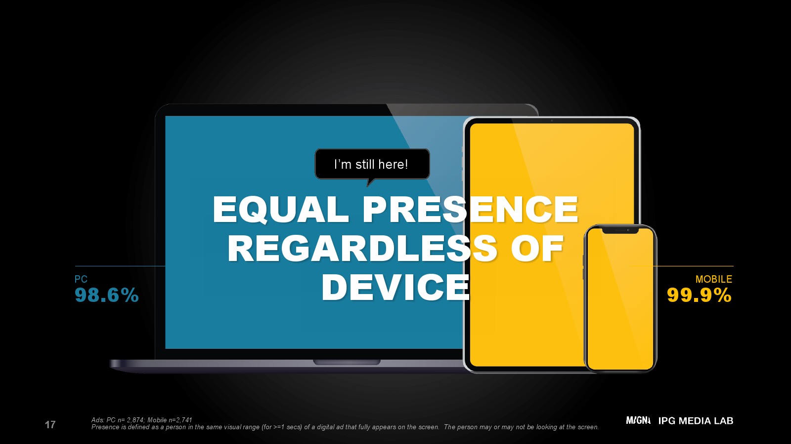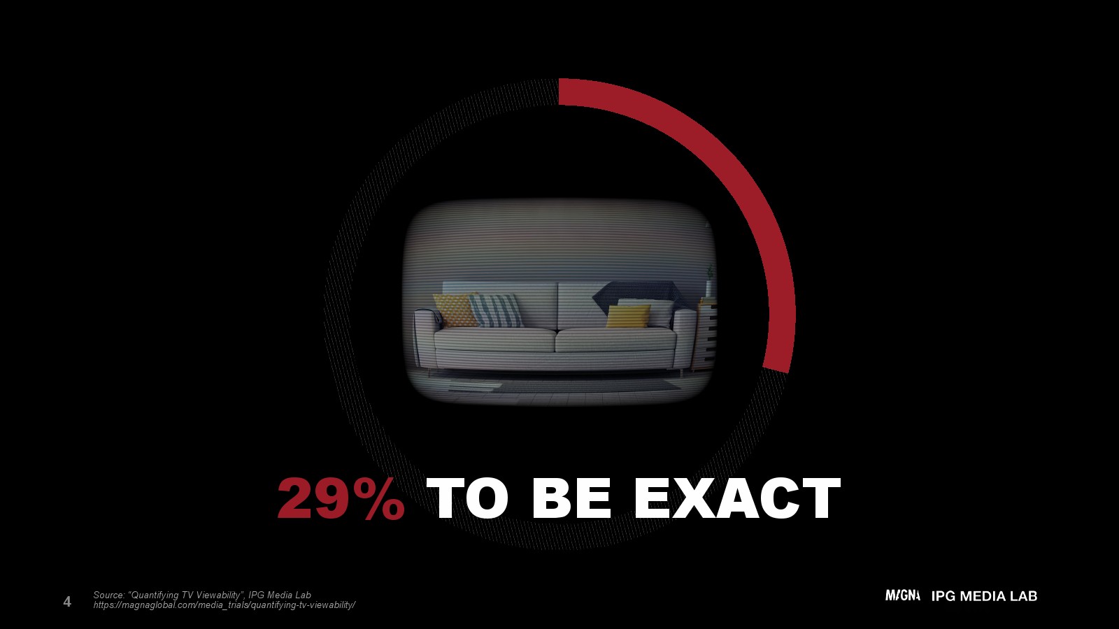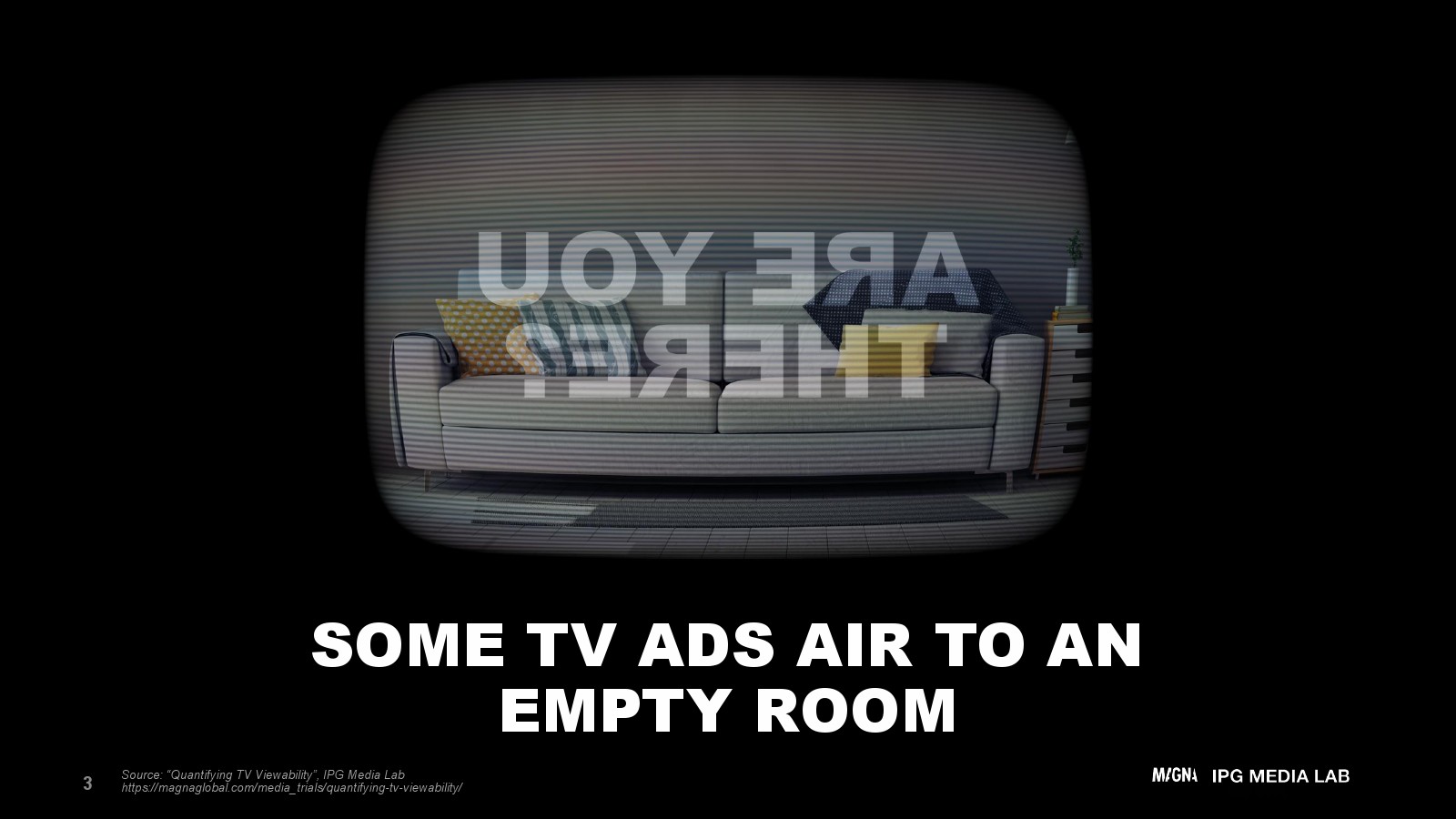 MAGNA发布了新报告“解剖观看的机会”。鉴于人们经常在广告时段离开房间,这种人类“在场”的概念是电视广告普遍关注的问题。MAGNA、IPG媒体实验室和TVision最近量化了一个广告在一个空房间播放的频率,占29%的时间。作为后续研究,MAGNA和IPG媒体实验室的一项新研究测试了数字广告出现在屏幕上时有人在场的假设,试图量化数字广告在没有在场的情况下出现的频率。