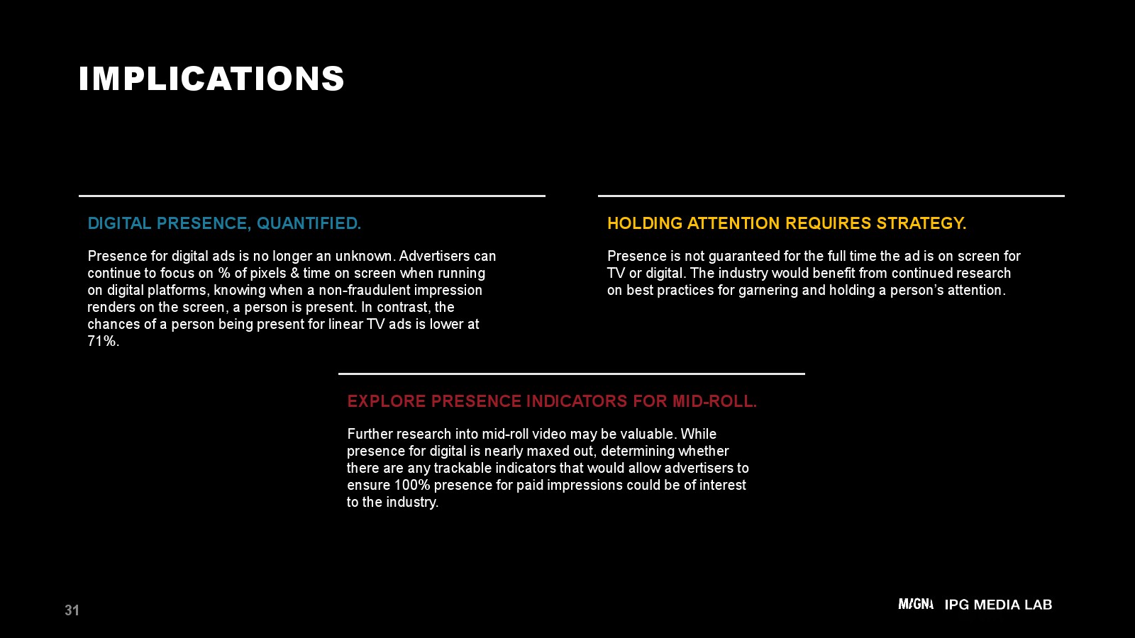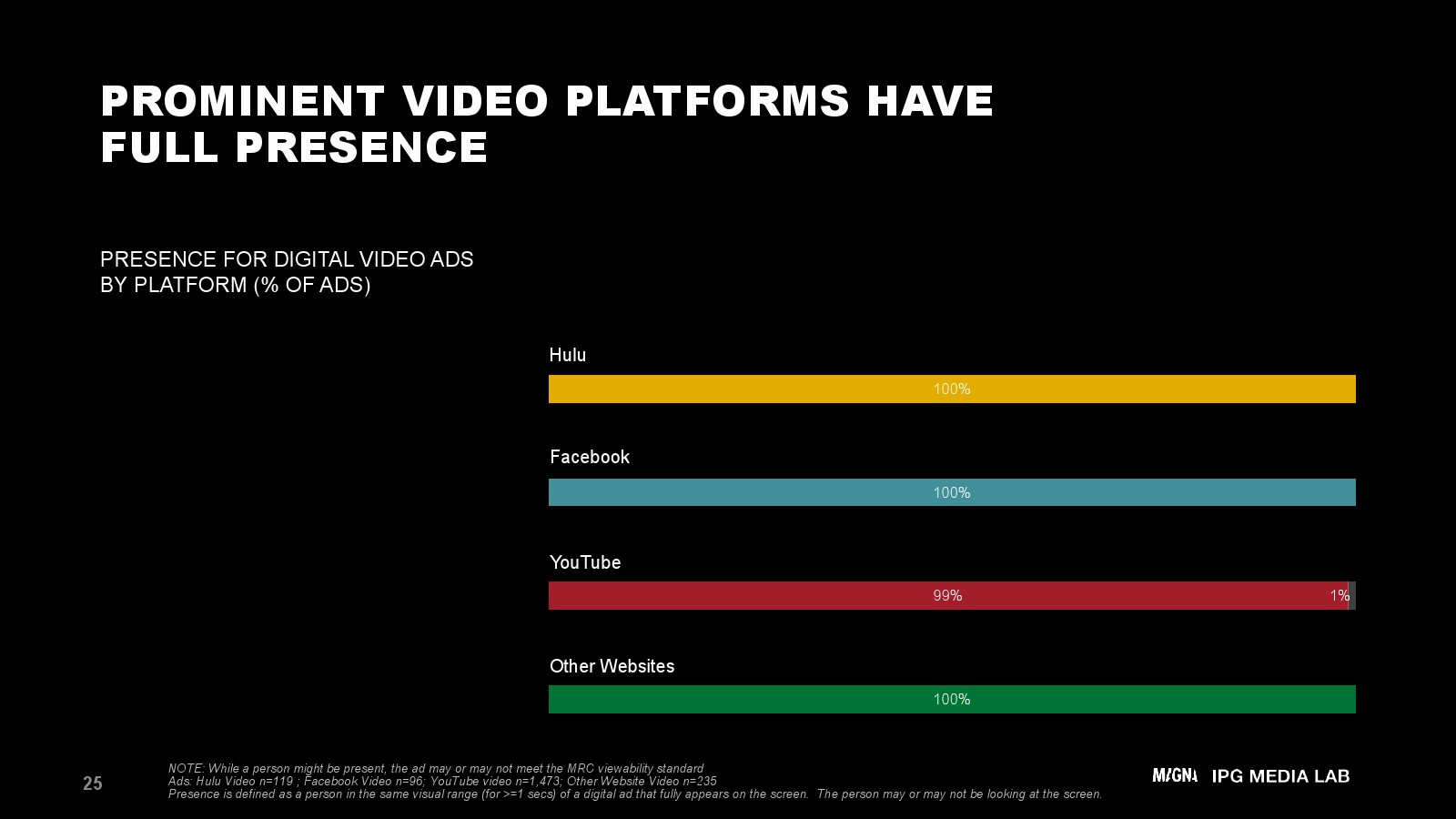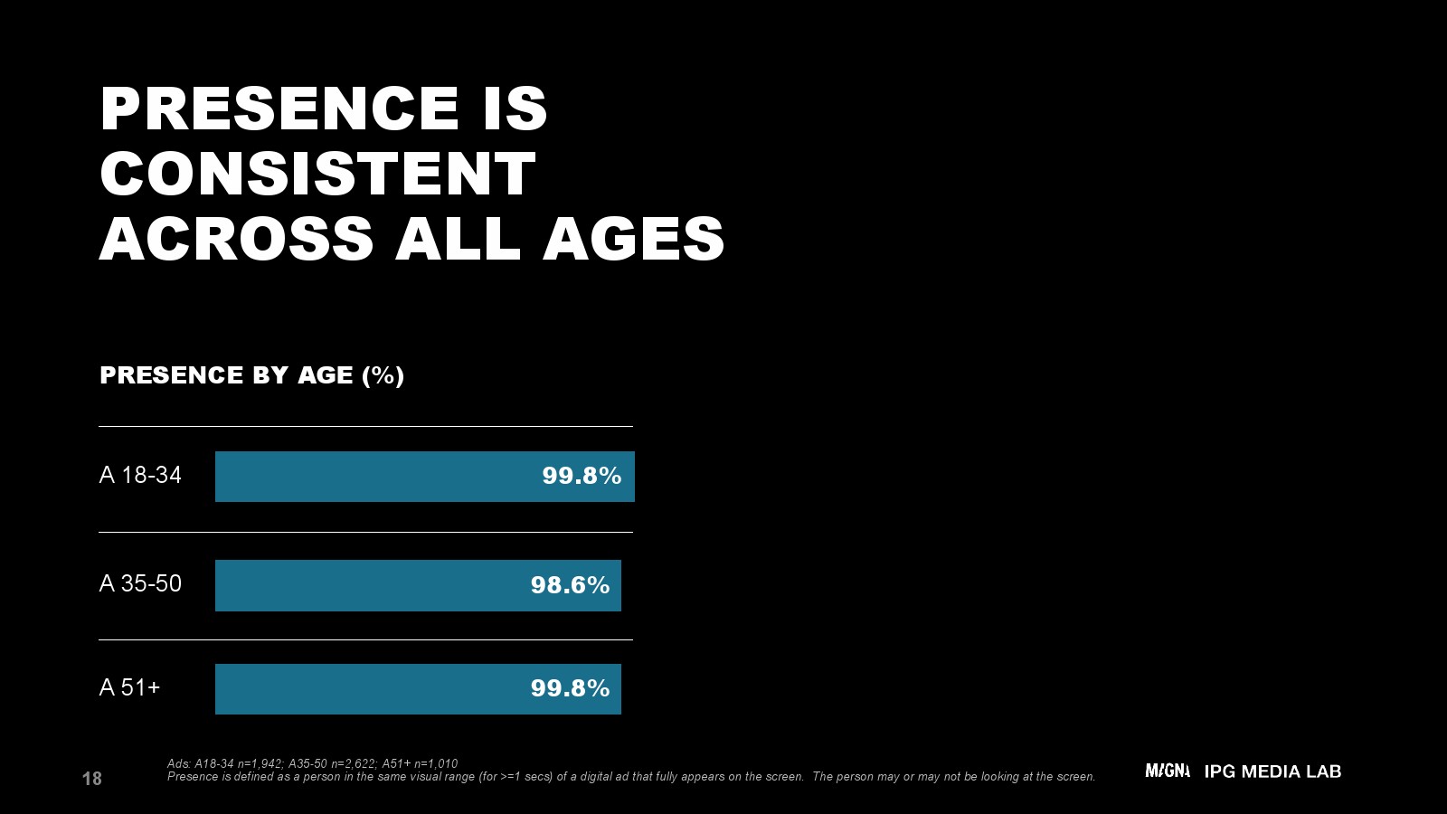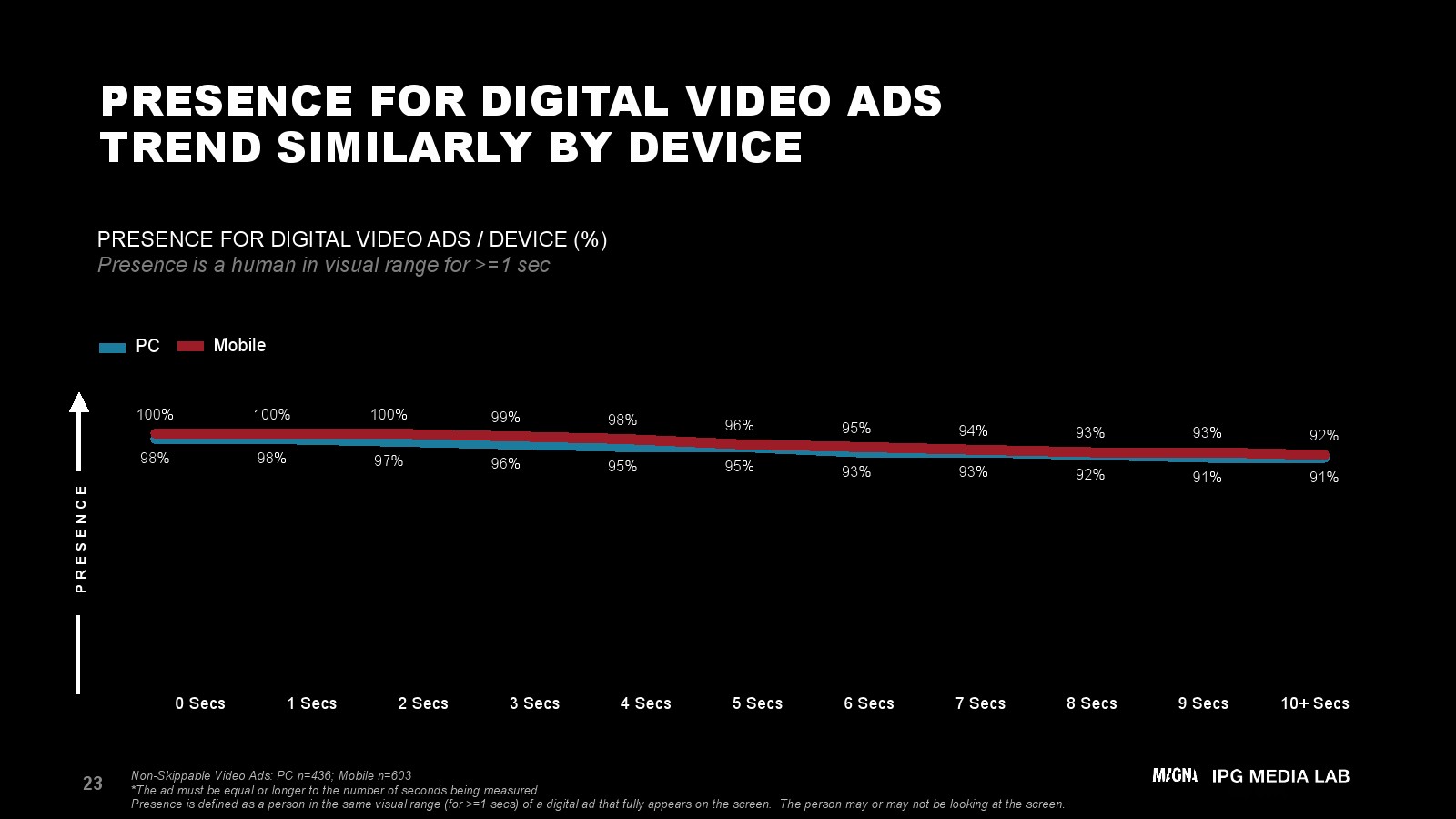 这项研究的一个主要发现是,虽然一开始存在的比例非常高(99.2%),但它确实有所下降。例如,94%的不可跳过的视频广告在有人类在场的情况下播放达到6秒或更长时间。