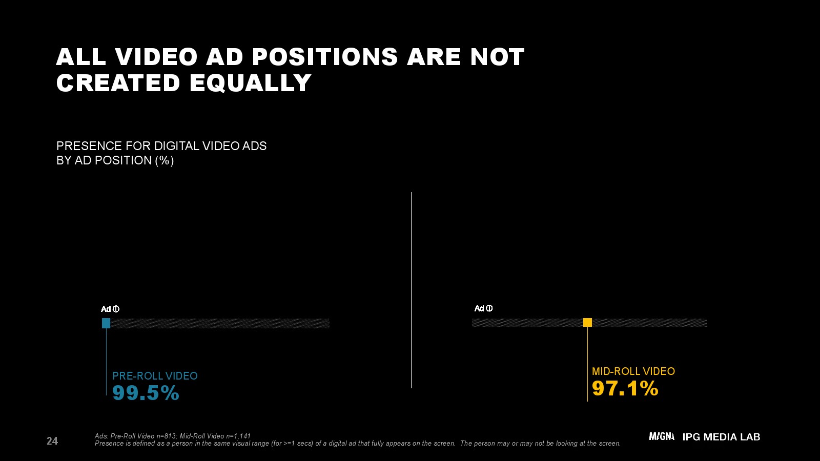 - 所有视频位置的创建并不相同;前贴片视频的呈现比例为99.5%,而中间插播视频的呈现比例为97.1%。