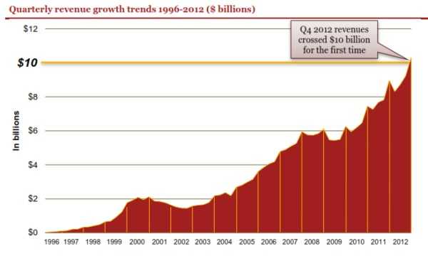 美国IAB研究机构发布2012年美国数字广告研究报告,报告数据显示,美国2012年数字广告市场规模较2011年增长了15%,达到316亿美元,而仅在2012年的第四季度,美国数字广告的规模就达到了100亿美元,较去年同期增长了14.9%。