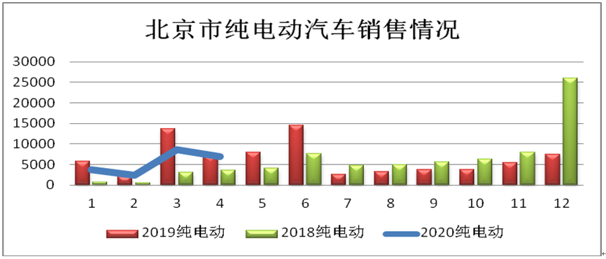 4.1—4月份北京市纯电动车累计交易21783台,较去年28703台,累计同比下降24.11%。