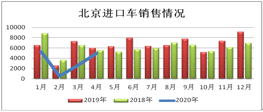 2.1—4月份北京市进口车累计交易13426辆,同比去年22324辆累计下降39.86%,占北京市新车交易总量10.13%。