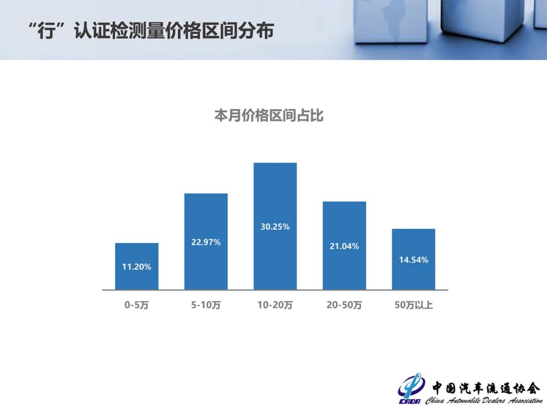 在4月的价格区间占比中,10-20万的车型占比最高,达到30.25%,5-10万的车型其次,占比为22.97%,占比最少的是0-5万的车型,占比只有11.20%。