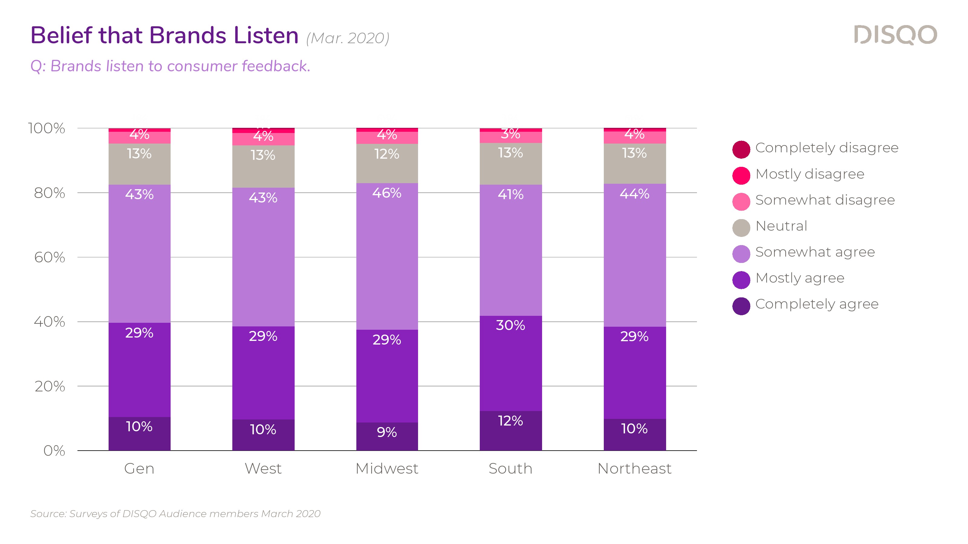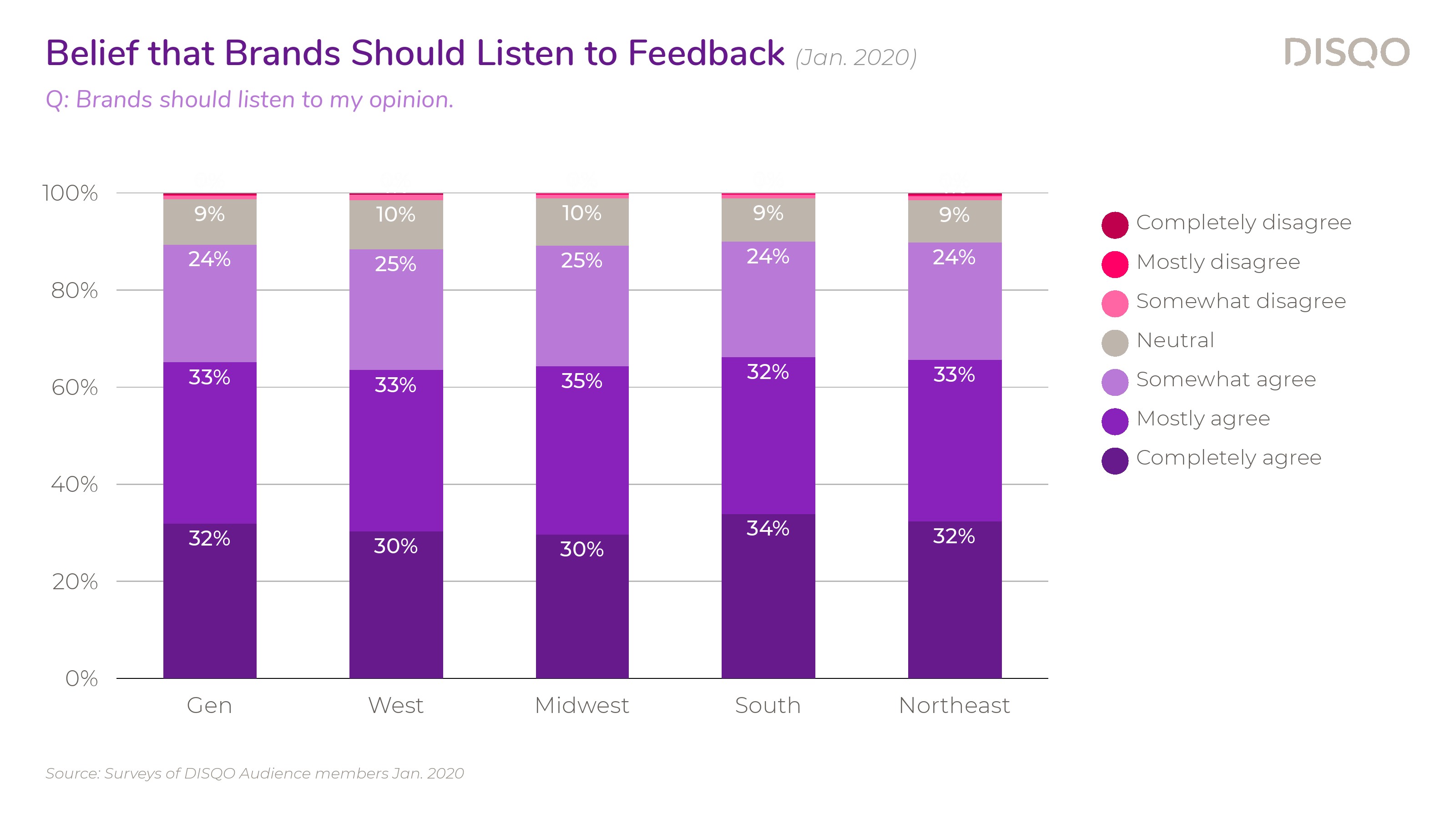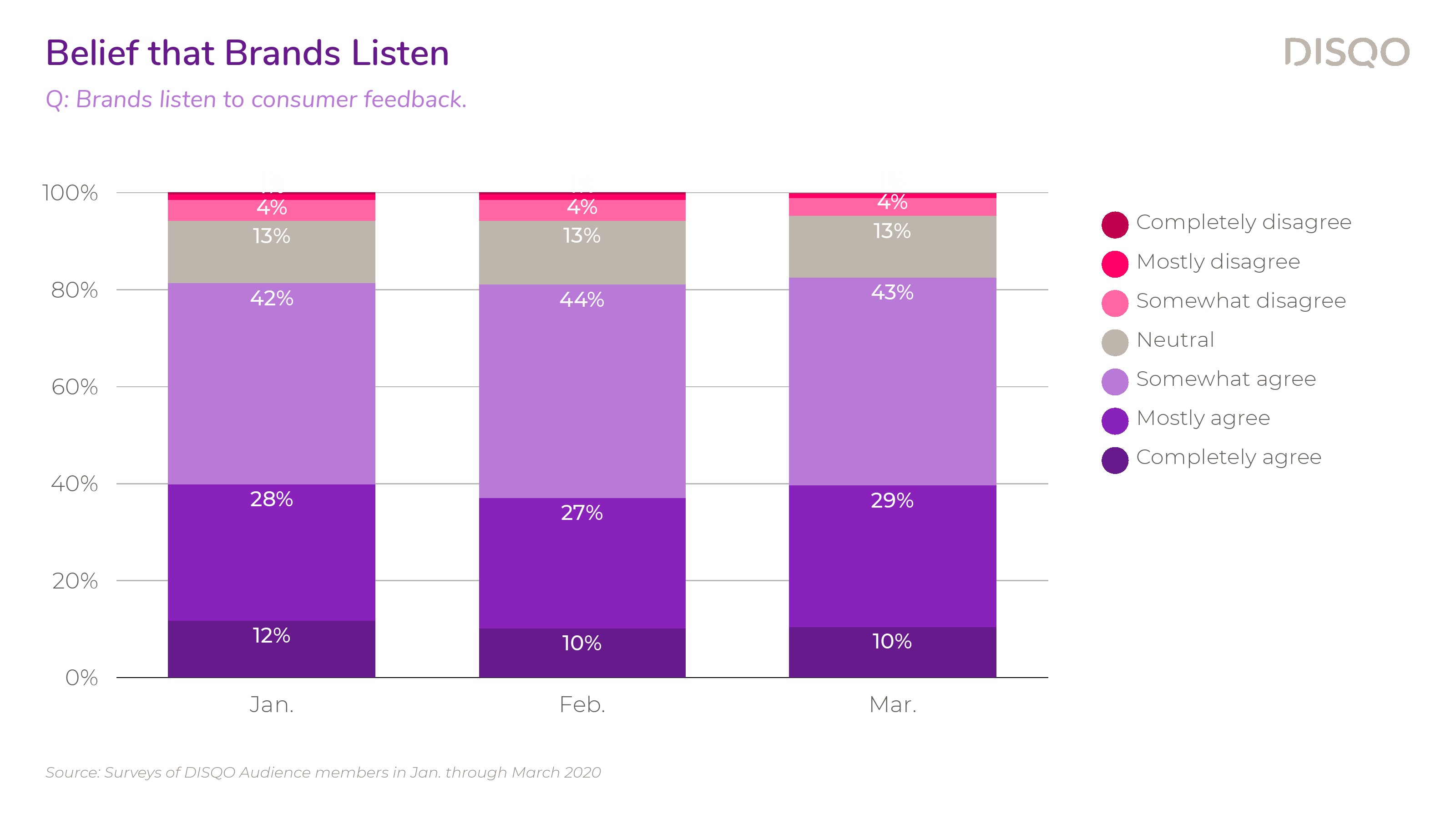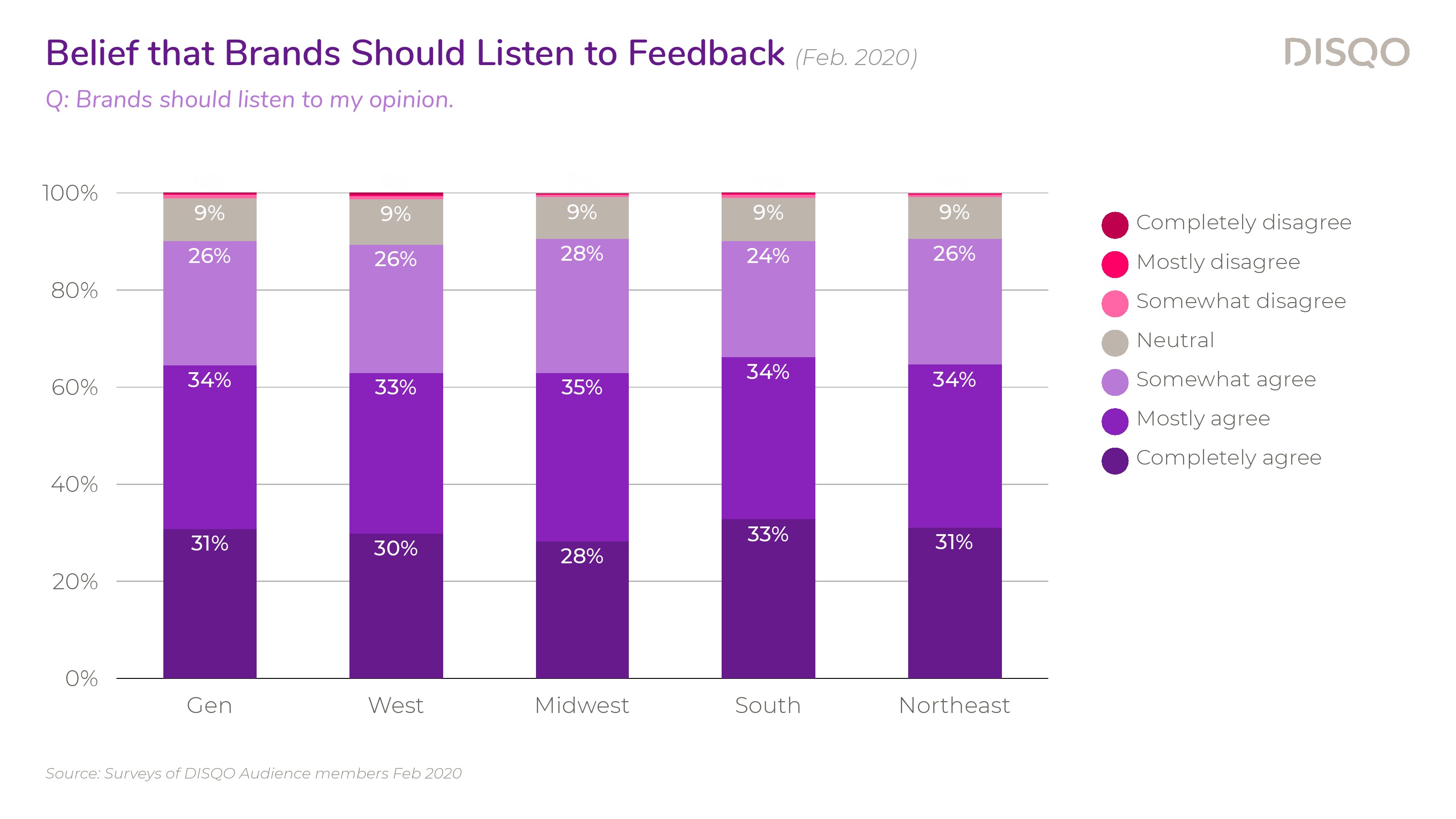 DISQO发布了“2020年春季消费者心声研究”,超过8/10的消费者(85%)通过调查与品牌分享他们的观点,这成为最受欢迎的反馈方式。
