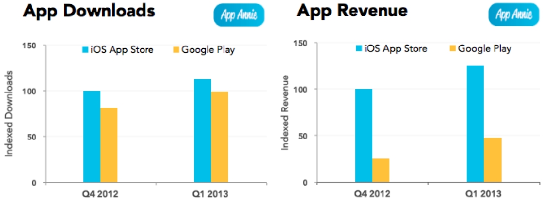 2013年4月17日晚间消息,应用程序数据分析公司App Annie发布的最新报告显示,Google Play应用商店第一季度的销售额增长了90%,但苹果App Store的销售额仍为其2.6倍。