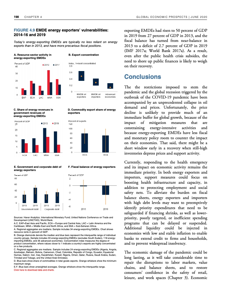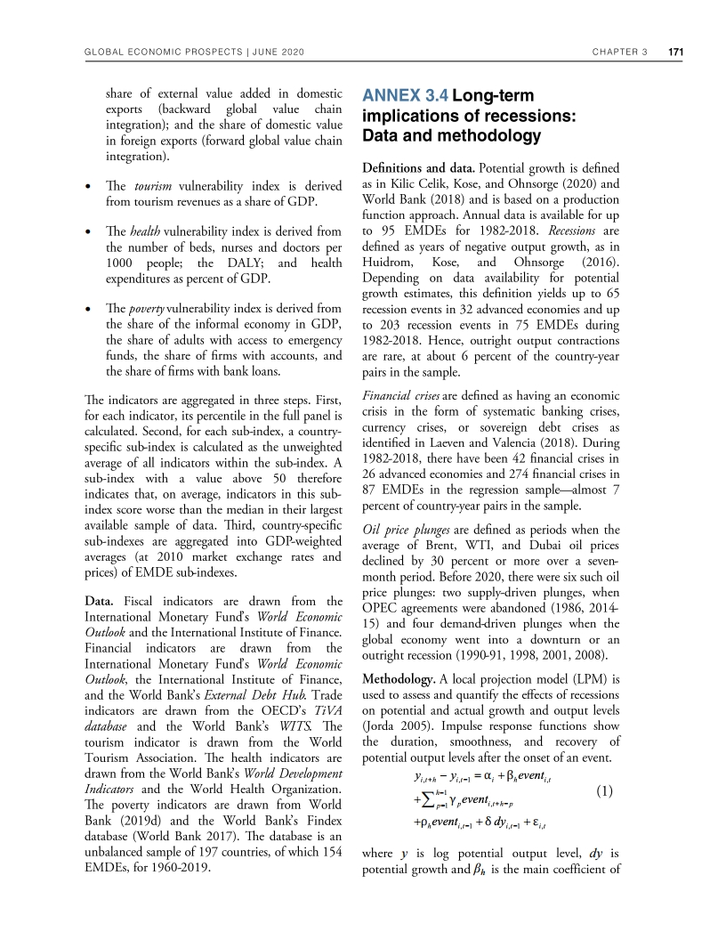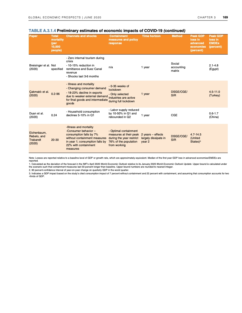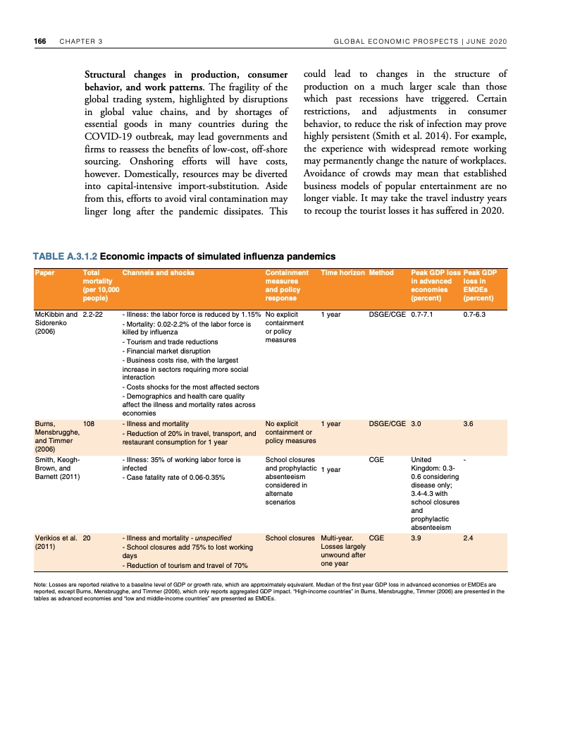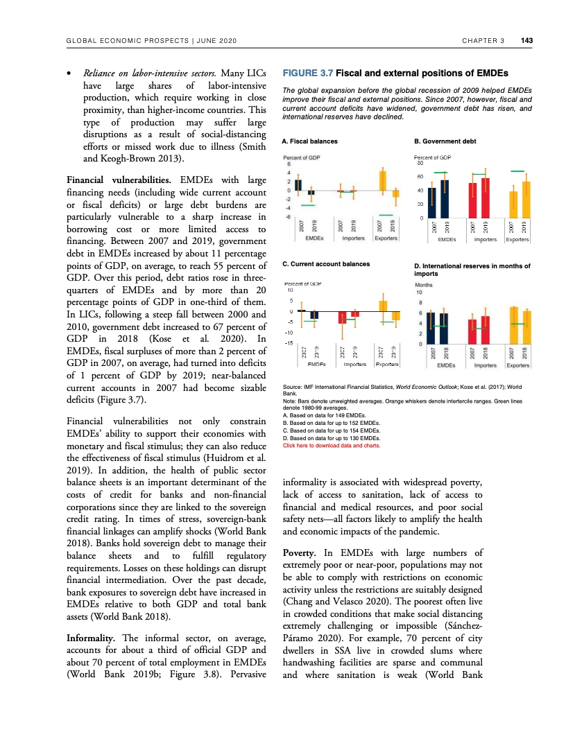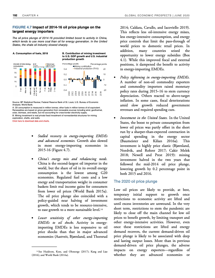 报告认为,由于新冠疫情的冲击及其防控措施带来的经济“停摆”,全球经济将在2020年陷入严重收缩,预计人均收入降低3.6%。今年将是1870年以来人均产出出现下降的经济体数量最多的一年。其中,严重依赖全球贸易、旅游、大宗商品出口和外部融资的经济体受疫情冲击最大。此外,新兴市场及发展中经济体的脆弱性也将被外来冲击放大。