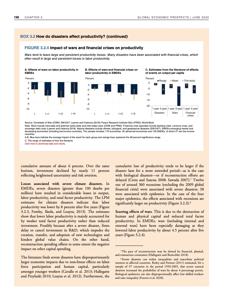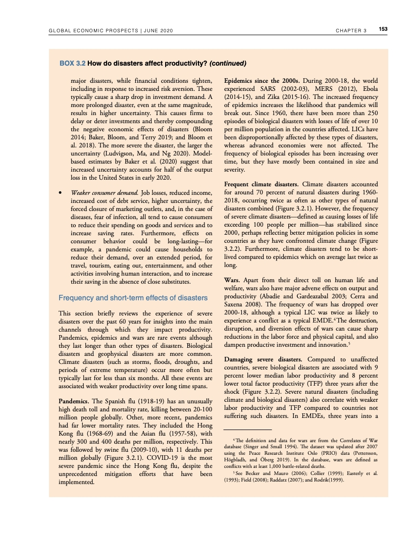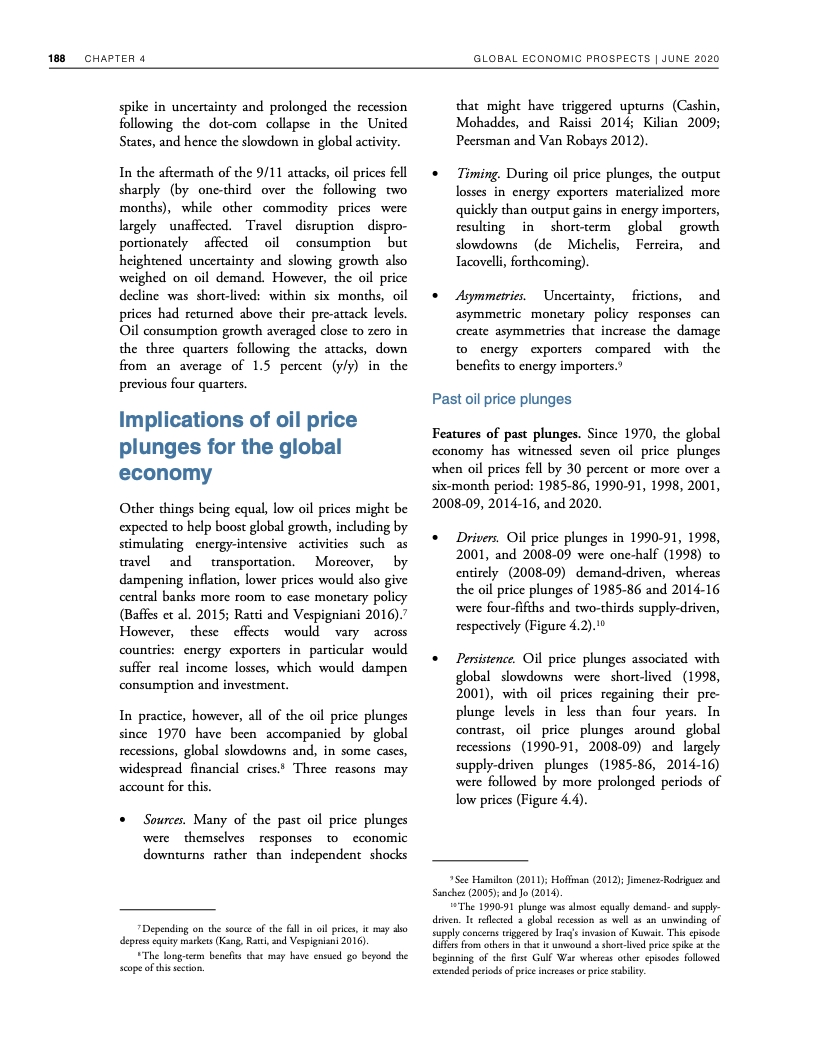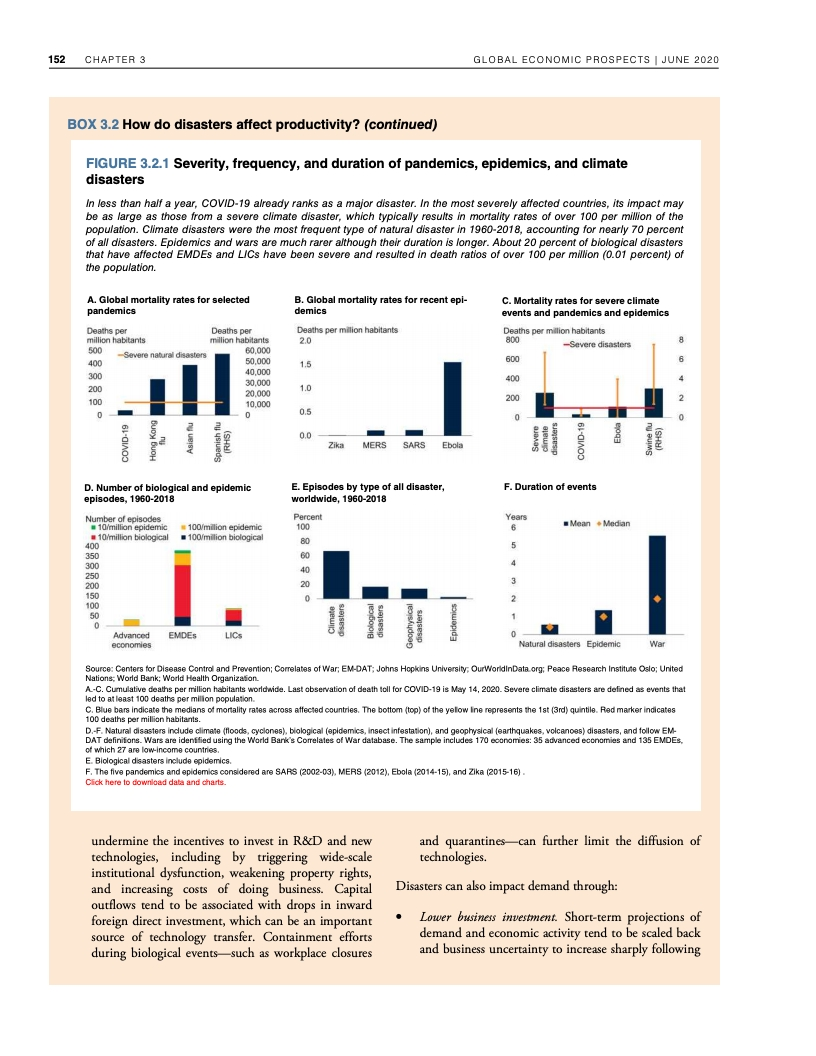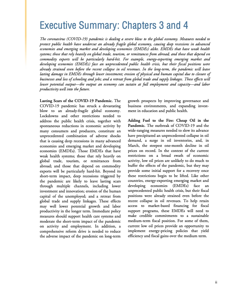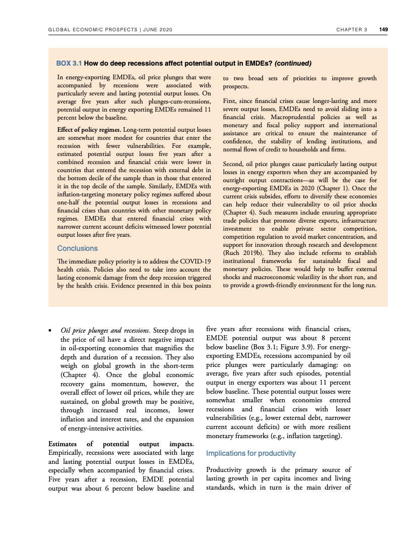 报告认为,由于新冠疫情的冲击及其防控措施带来的经济“停摆”,全球经济将在2020年陷入严重收缩,预计人均收入降低3.6%。今年将是1870年以来人均产出出现下降的经济体数量最多的一年。其中,严重依赖全球贸易、旅游、大宗商品出口和外部融资的经济体受疫情冲击最大。此外,新兴市场及发展中经济体的脆弱性也将被外来冲击放大。
